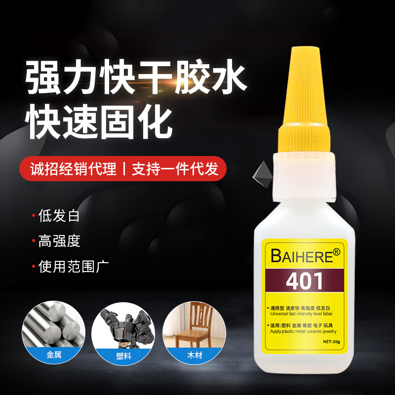 도매 대용량 401 접착제, 강력 접착제, 철, 플라스틱, 금속 신발 수리용 접착제, 희게 변색되지 않는 특수 접착제
