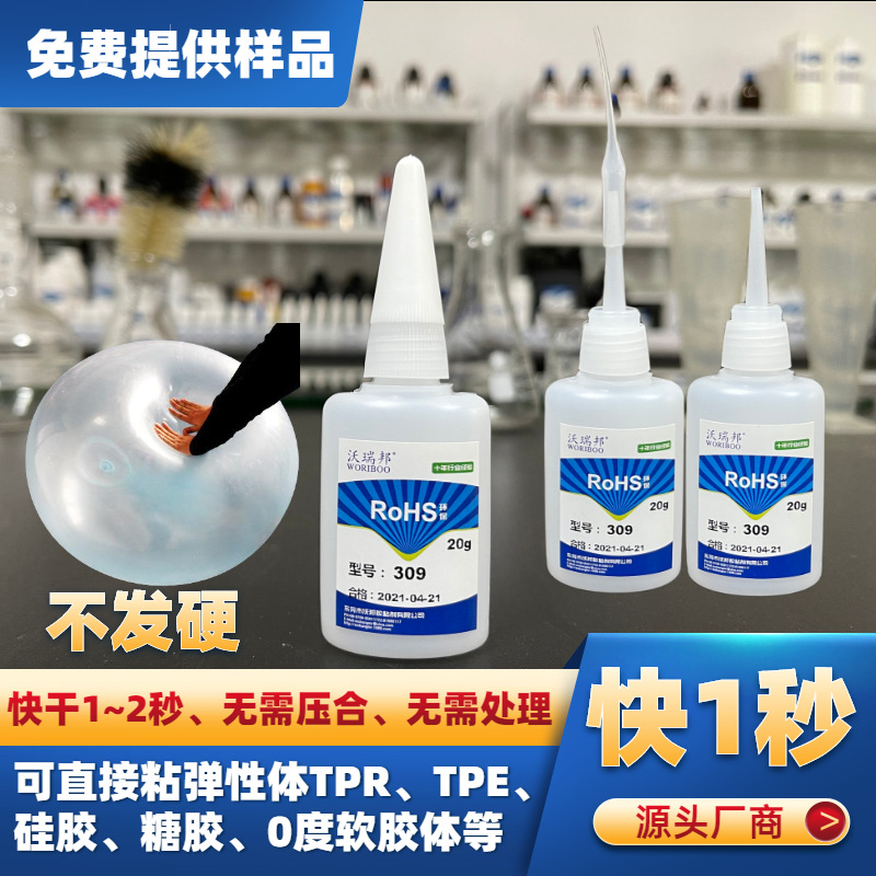 1、 可粘接金属、塑料、电镀元件、橡胶、陶瓷、木料、石头、玻璃、尼龙、皮革等等,可1-2秒定位,耐加温加热,防水、耐80~100度水煮,胶质有韧性,具有好的抗震动性能。