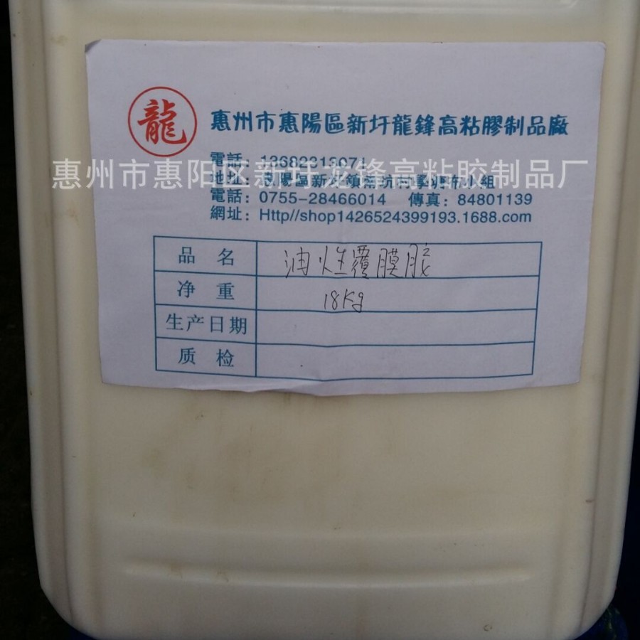本产品主要用于塑料薄膜与各种纸张印刷件之间的覆合,广泛用于书册、酒盒、挂历、手挽袋、时尚杂志等的包装装饰,系由多种橡胶树脂聚合而成。 技术指标: 外观:金黄/淡黄/白色透明粘稠液体 固含量:40±2% 粘度:1800-2000mp.s W-V(GARDNER粘度计)/80秒(涂4杯) 包 装:18KGS/塑胶桶 保质期:6个月(储存温度5~30℃) 注意事项:1.请勿放置阳光直射的地方,远离热源,常温下保存。 2.使用时务必戴口罩,注意防火,勿食用,误食请求医。 产品特性和使用方法: 1、本产品气味低,对BOPP、PVC、PET、PP等薄膜有稳定的粘合性,覆膜后的制品具有透明度高、光亮度佳、保质期长、耐黄变、耐水性好等特点。对印刷品喷粉多的盖粉力强、油墨的适应性优良。 2、请将此油用本公司天那水1:1稀释后上机使用,使用过程由于溶剂挥发至油剂过浓时,可补充少量天那水。天那水用量不宜过大,否则会影响涂膜附着力。 3、覆膜机干燥装置烘道内的温度一般控制在55-65℃,加热辊的温度一般控制在60-80℃,压力控制在8-20mpa/m3,特殊情况例外。 |