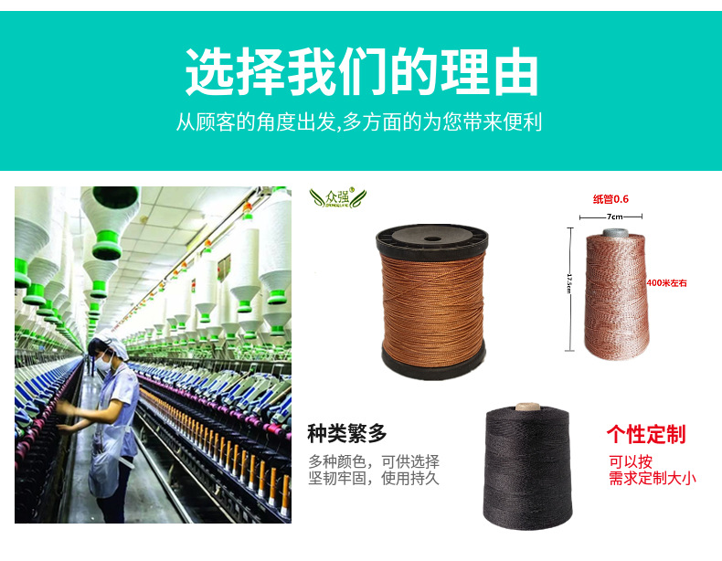 연 라인 다크 브라운 폴리 에스테르 신발 라인 타이어 라인 낚싯줄 낚싯줄 건설 라인 공장 도매