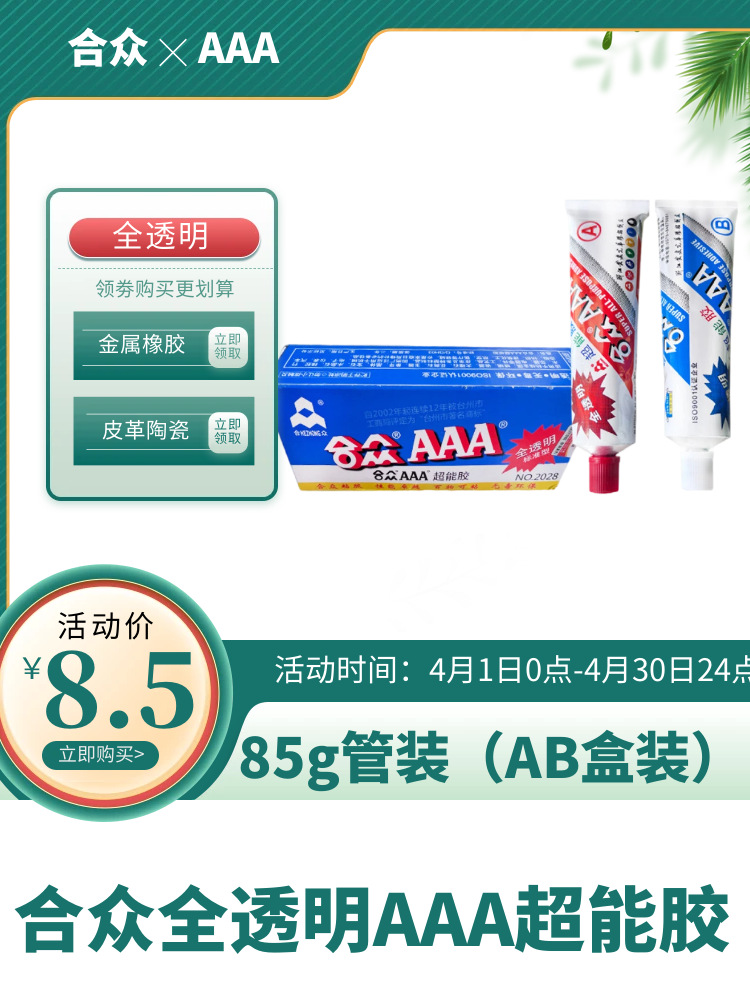 【用 途】:合众牌全透明AAA®超能胶,适用于粘接金属、玻璃、瓷器、大理石、花岗石、玉器、象牙、晶体、宝石、水晶石、橡胶、竹木、乐器、电器零件、工艺品、皮革及多种塑料制品,因为广泛用于机械、电子、仪表、汽车、造船、纺织、建筑、代工、航空、医疗等领域,亦是家庭日用修补之必备佳品。