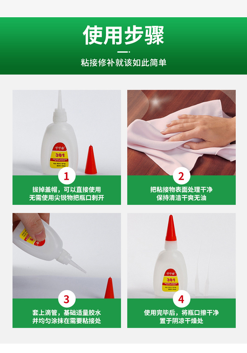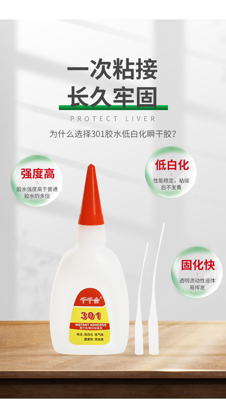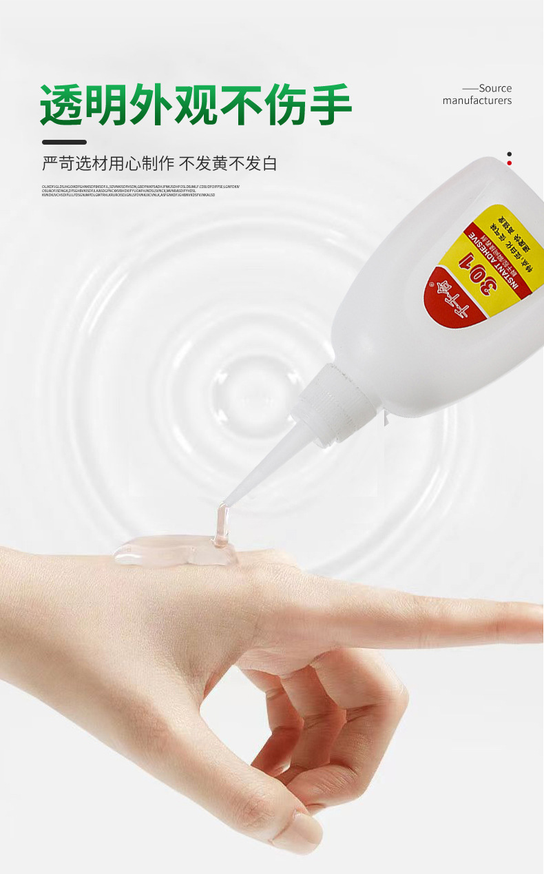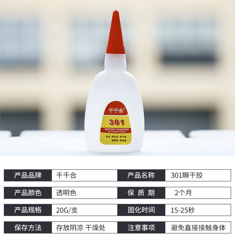 301 접착제 낮은 미백 인스턴트 접착제 접착제 금속 플라스틱 PVC 높은 유연성 강한 접착제 빠른 건조 장난감 접착제