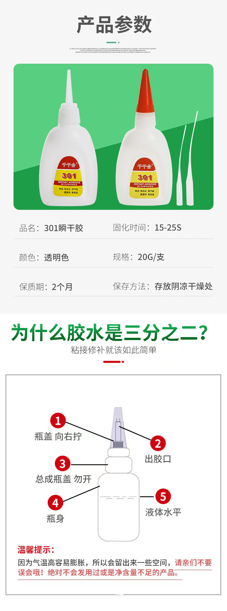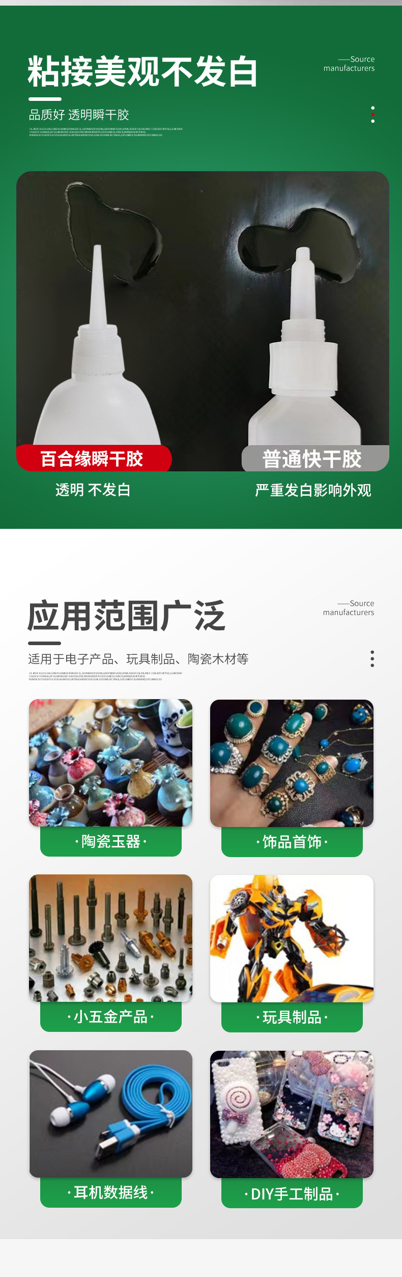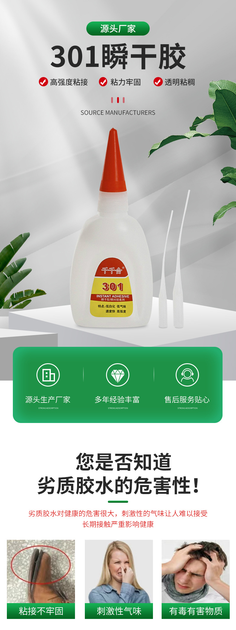 301 접착제 낮은 미백 인스턴트 접착제 접착제 금속 플라스틱 PVC 높은 유연성 강한 접착제 빠른 건조 장난감 접착제