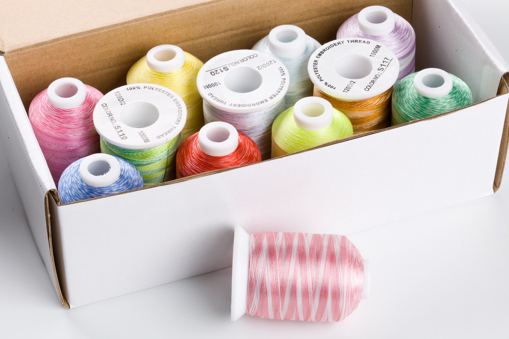 欢迎联系我们,订做属于您的品牌。我们可以生产涤纶绣花线,人造丝绣花线,金属绣花线,涤纶/丝光棉缝纫线。