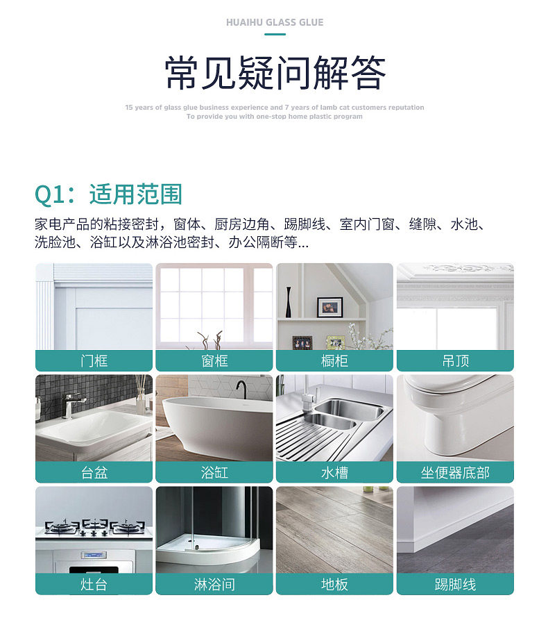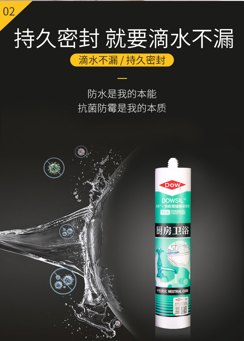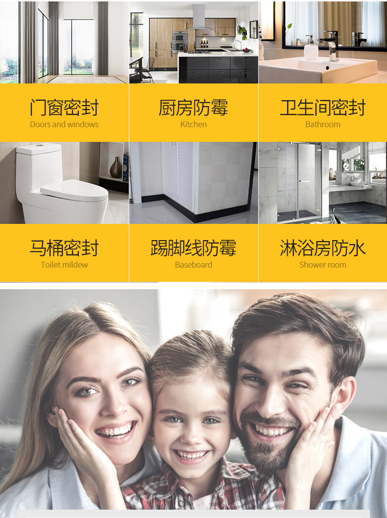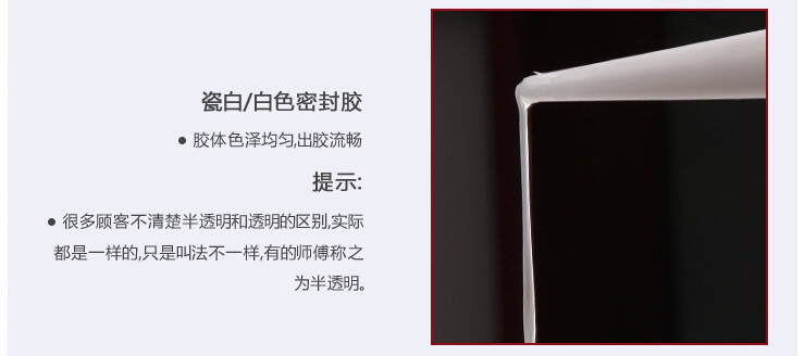 适用于一般密封包括:淋浴房,浴缸,台盆,坐便器,厨房设备等.