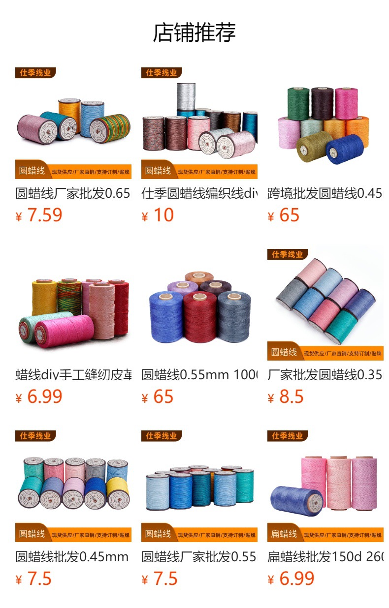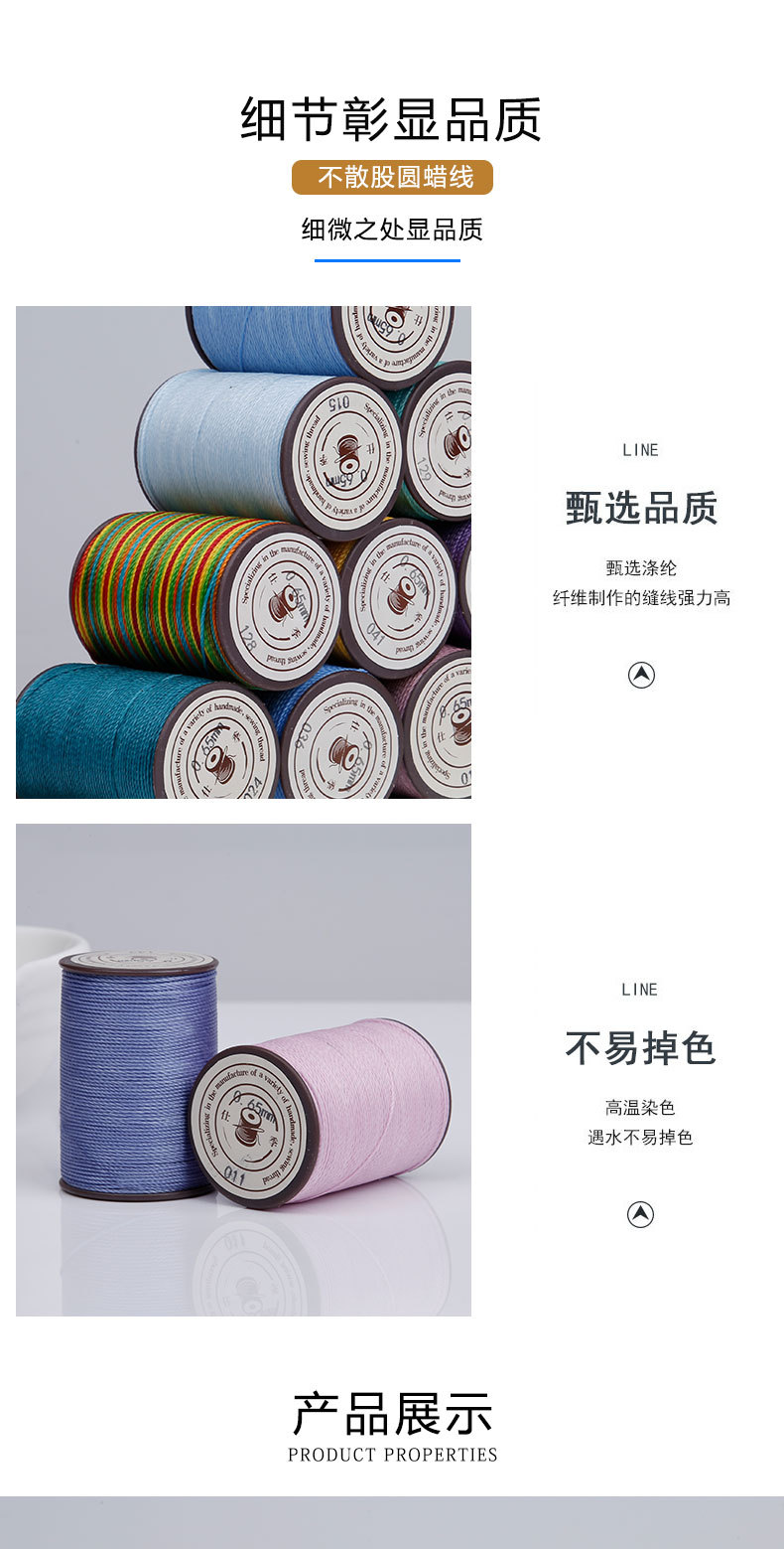 원형 왁스 실 제조업체 도매 0.8mm 50m DIY 수제 왁스 로프 가죽 제품 고강도 실 재봉실 폴리에스터 왁스 실