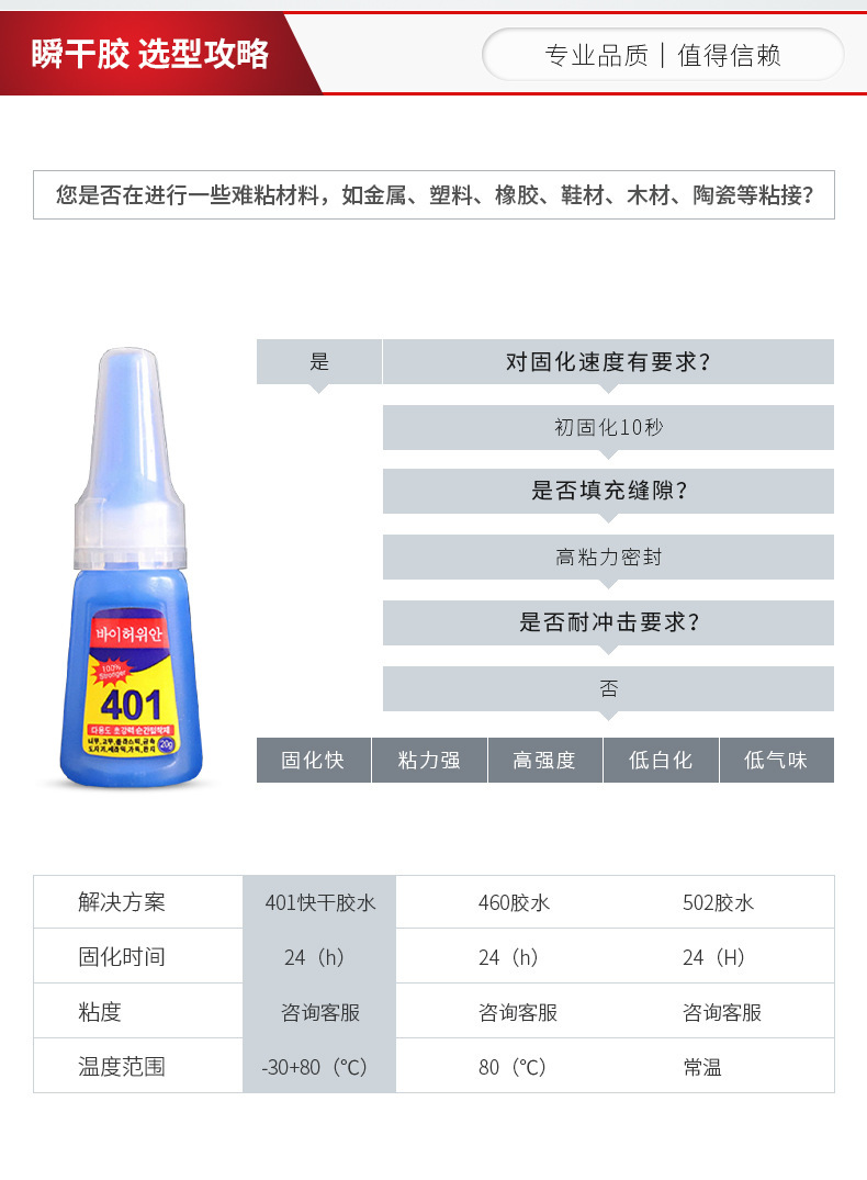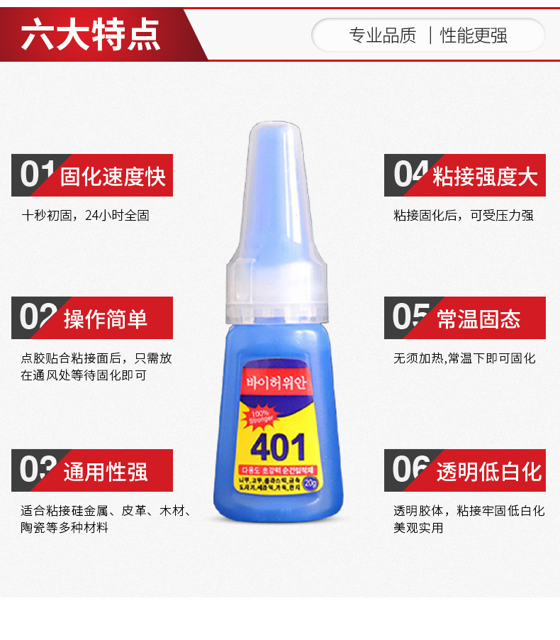 한국어 버전 특수 401 접착제 강력 접착제 신발 수리 접착제 강력 접착 철 금속 플라스틱 유성 접착제 401 접착제 20g