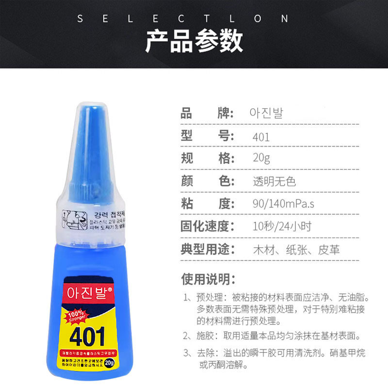 401 접착제 20g 신발 수리용 접착제 유성 접착제 502 강력 접착제 철, 플라스틱, 세라믹, 네일아트, DIY 수공예 전용