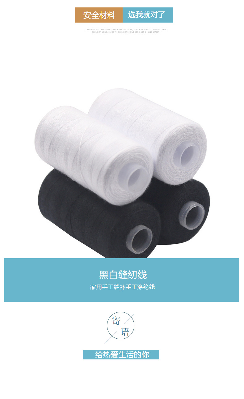 공장 도매 가정용 재봉실 수제 재봉 흑백 실 500.402m 폴리에스터 실