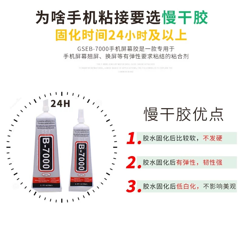 휴대폰 화면 전용 접착제로 터치스크린 벗겨짐, 프레임 분리 등을 수리합니다. b7000 고점도 속건 접착제.