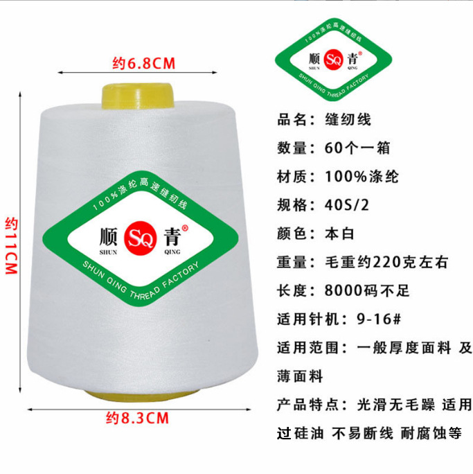 402缝纫细线,95克144个一箱,190克60个一箱,220克60个一箱,450克48个一箱,500克48个一箱,1000克24个一箱,整箱包邮,拍下联系客服改运费。