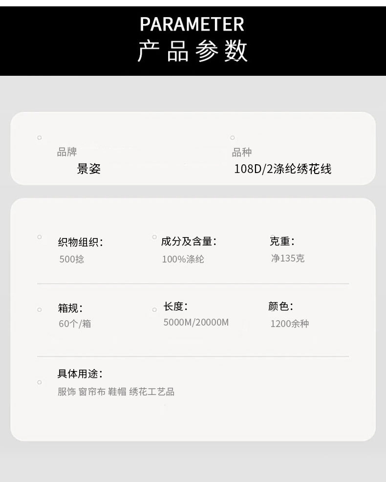 자수실, 폴리에스터 실, 108D/2 폴리에스터 실, 컬러 카드 컴퓨터 실 도매