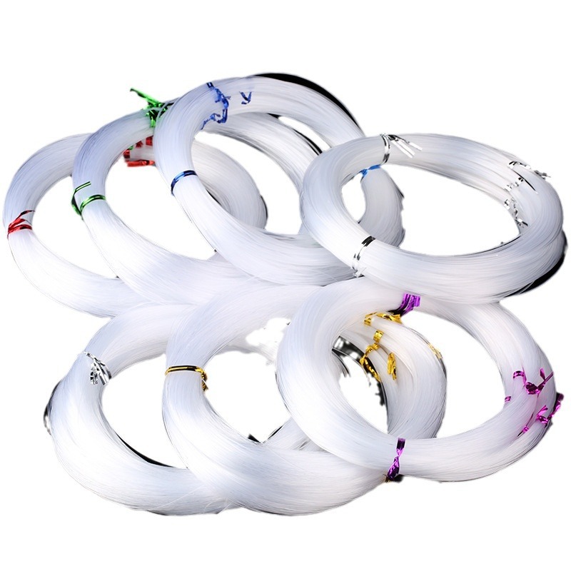 为了客户可以很好的区分开每个鱼线的粗细,掌柜的用不同颜色的扎带代表不同的粗细型号。银色扎带的是0.4粗细,金色扎带的是0.5粗细,玫红扎带的是0.6粗细,大红扎带的是0.7粗细,绿色扎带的是0.8粗细,银色扎带的是0.9粗细,宝蓝扎带的是1.0粗细