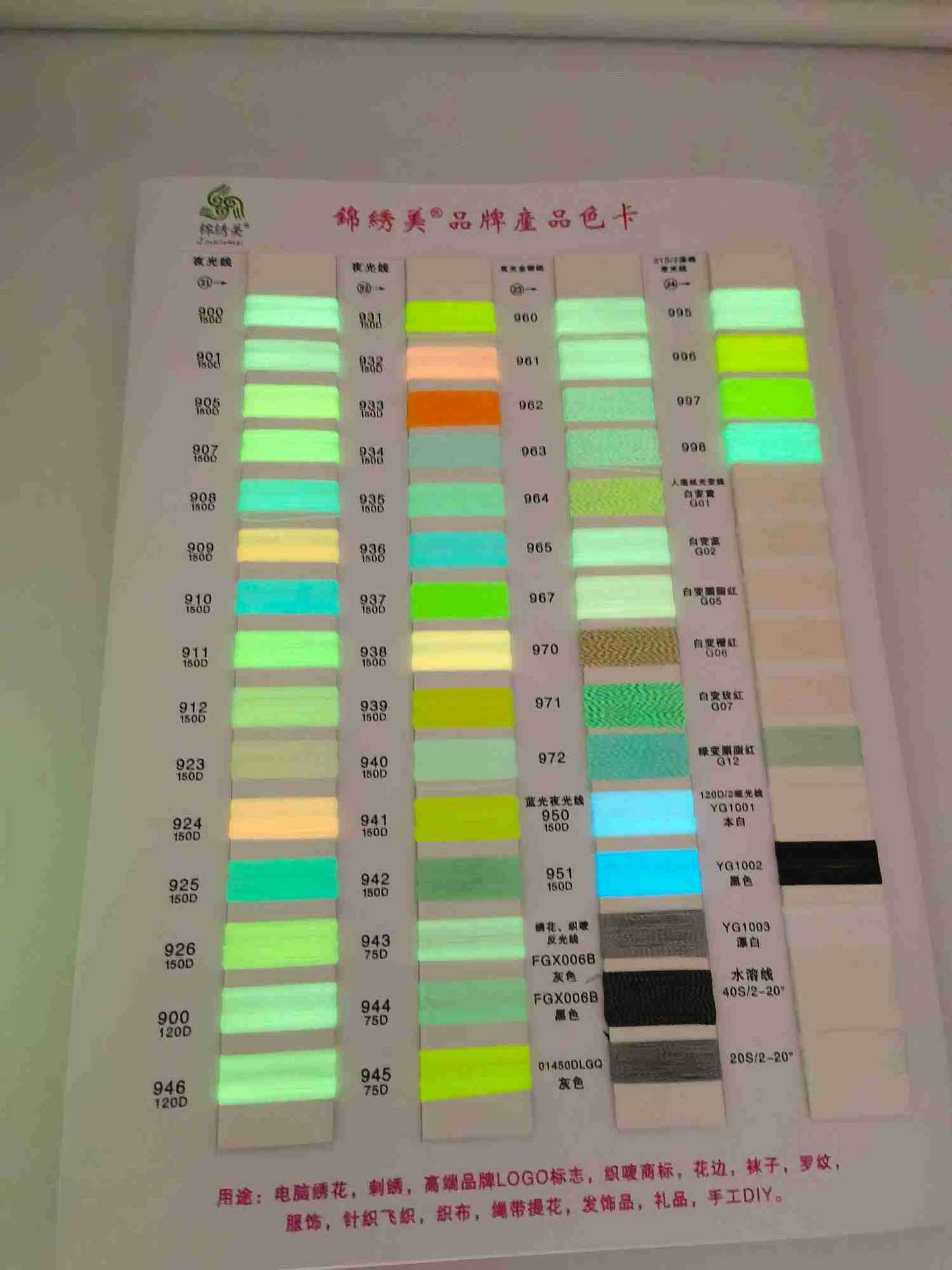 夜光线蓄光线萤光线免费试用,产品广泛用于服装绣花