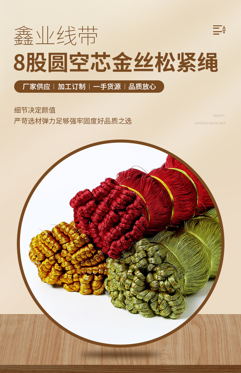 공장 직접 8 가닥 라운드 중공 코어 골드 스레드 태그 라인 양파 라인 선물 포장 라인 실크 골드와 실버 8 가닥 로프