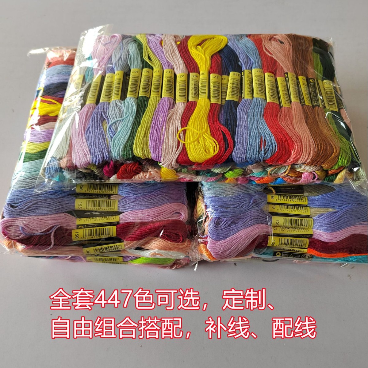 厂家直销,价格优惠,447色齐全 ;十字绣支线长度每支8米、6米、4米(其它长度定做联系客服)均可订做,商标可按客户来样印刷。欢迎国内外客商前来洽谈!