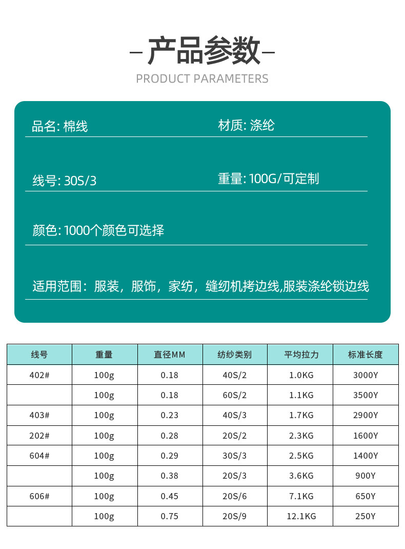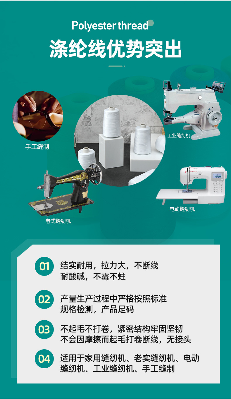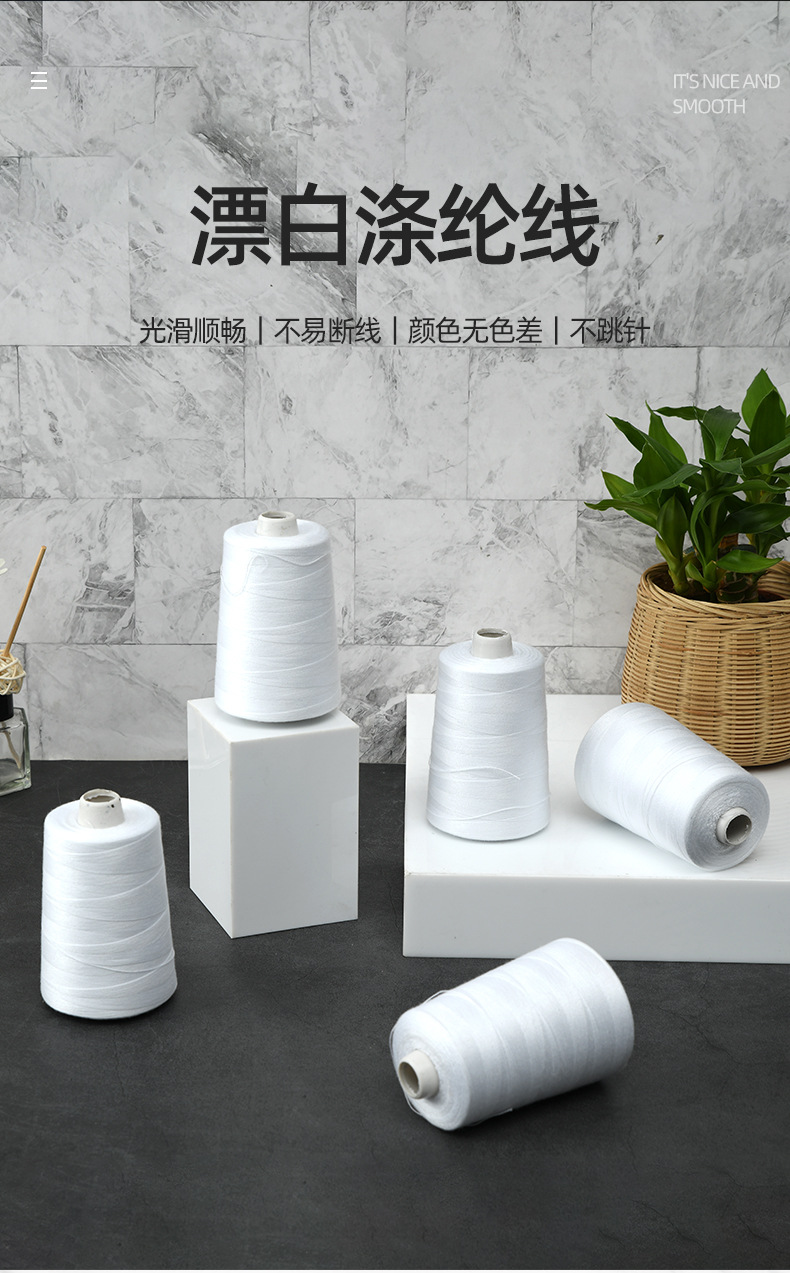 30s/3 표백 재봉실, 흰색 폴리에스터 실 303, 재봉틀용 고강력 실, 손바느질용 탑형 실