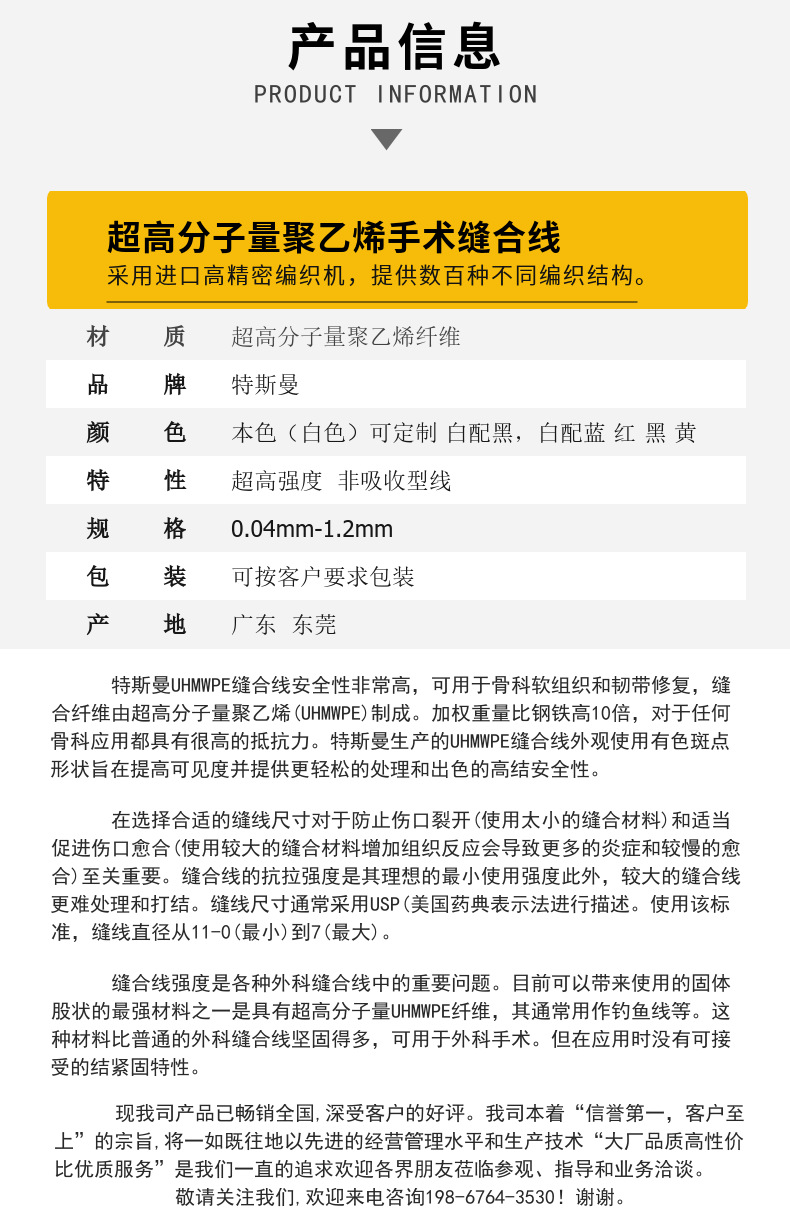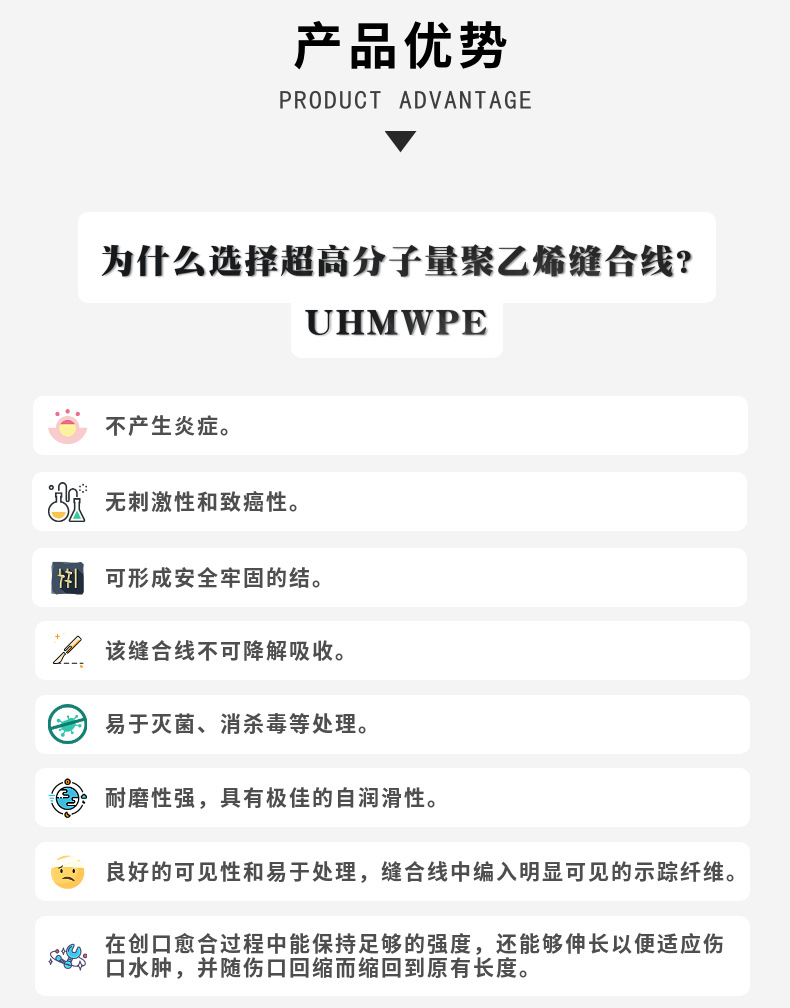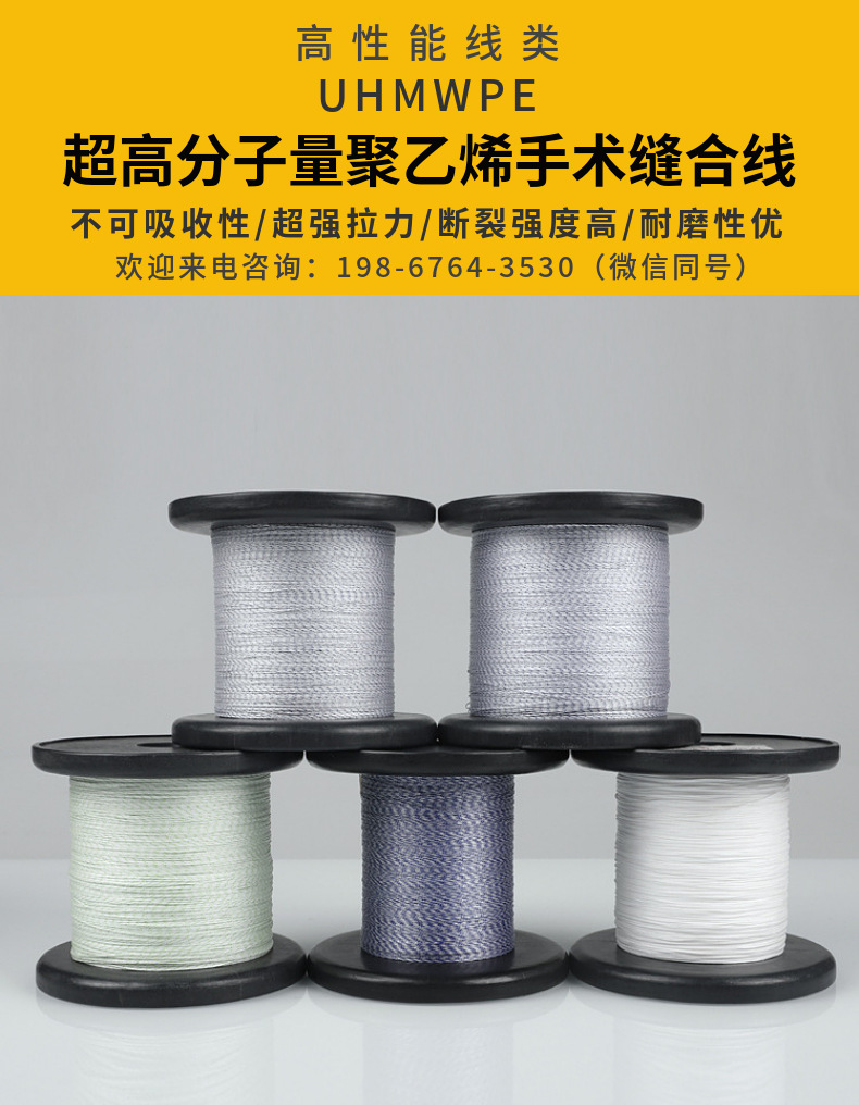 UHMWPE 수술봉합사 생체 적합성 안정성 비흡수성 고계수 저연장 봉합사