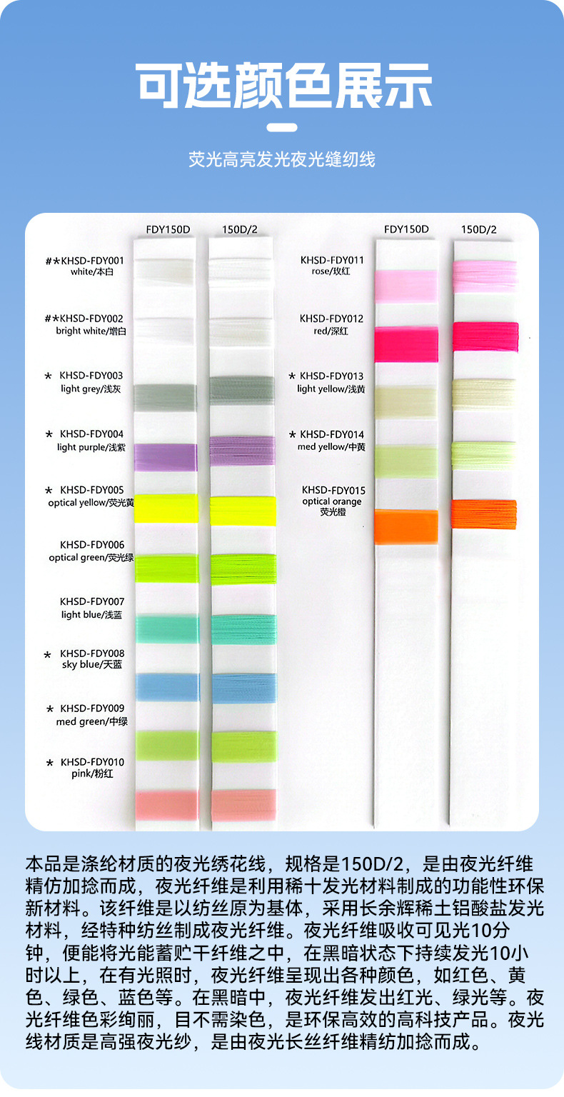 전문가가 선택한 야광 자수실 제조업체 도매 고휘도 야광실 회전기 야광 자수실 형광실