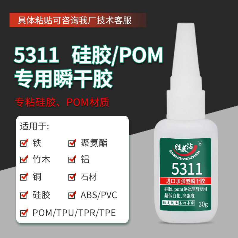 Shengmei Zhan POM 실리콘 특수 접착제 낮은 미백 인스턴트 건조 접착제 투명 슈퍼 접착제 금속 접착제 SM5311