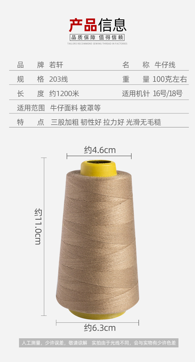 普通缝衣服的细线通常使用402线。本产品售卖的规格为203线,常用于牛仔裤,被罩等。