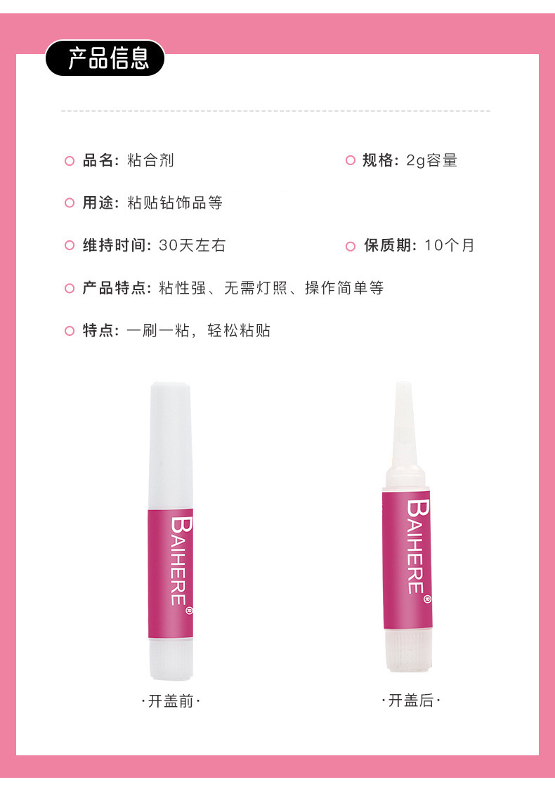 2g 네일팁용 접착제 소형 튜브 401 접착제 속건성 다용도 강력 접착제 즉시접착제 인조 손톱용 접착제