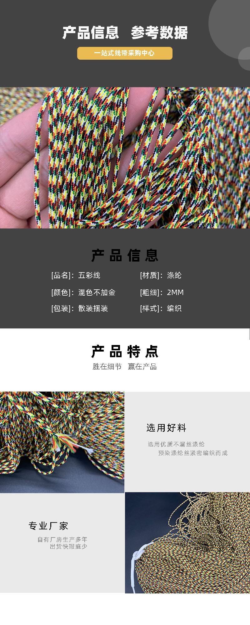 0.8 1.5 2.0mm 다채로운 금장 끈, 단오절 꽃줄 팔찌, 꼬임색줄, 대량 공장 직판