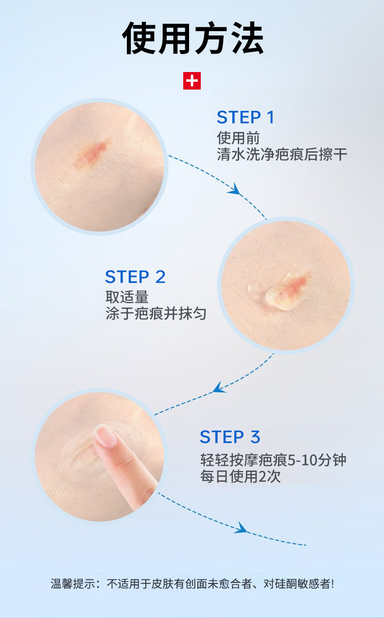 피부병리적 흉터 개선에 도움을 주고, 피부병리적 흉터 형성을 예방하는데 사용되며, 치유되지 않은 상처에는 사용하지 않습니다.