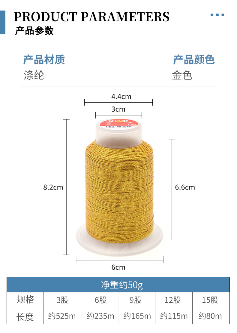 * 왁스 골드 스레드 * 50g 6 가닥