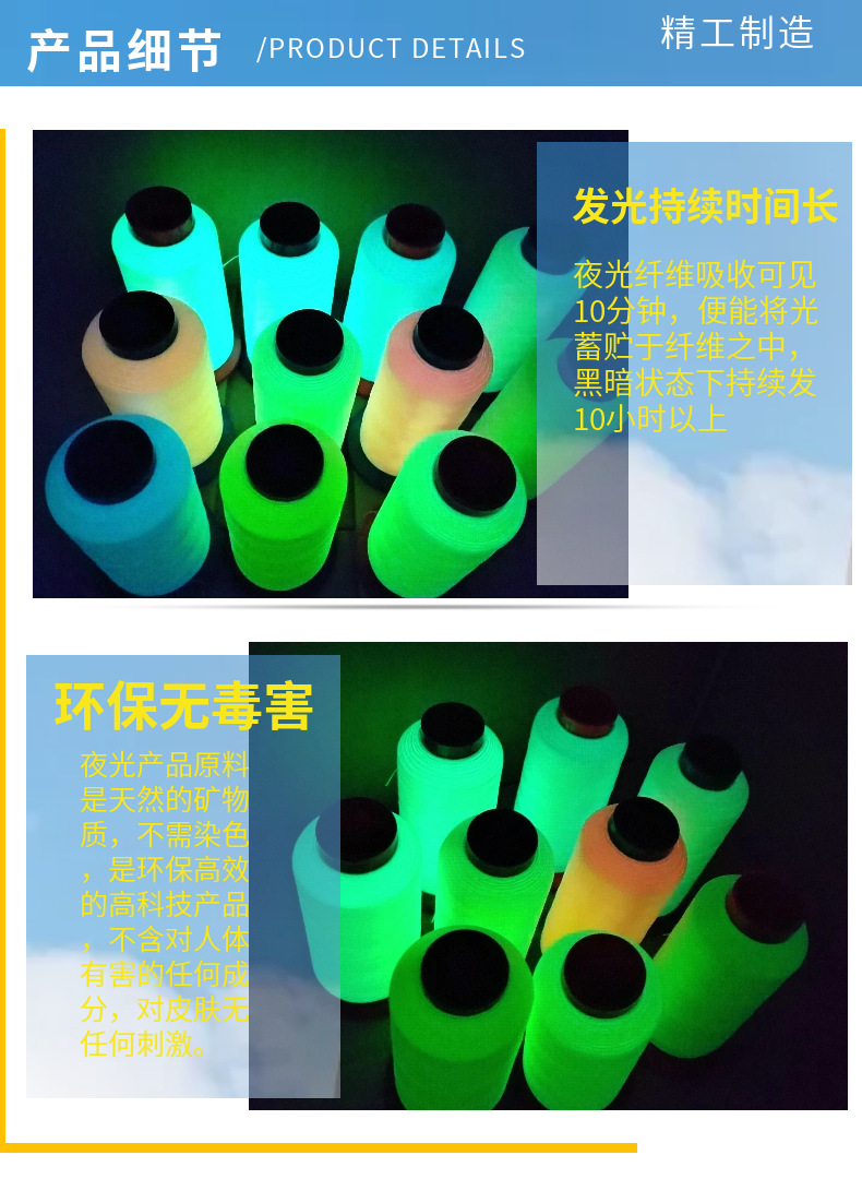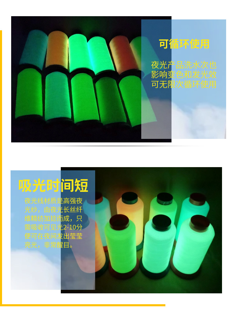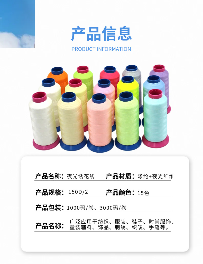공장 반점 150D/2 발광 자수 실 폴리 에스테르 마법 색상 빛나는 자수 원사 컴퓨터 자수 발광