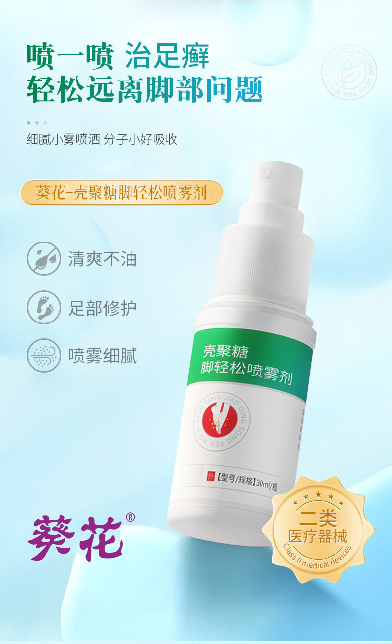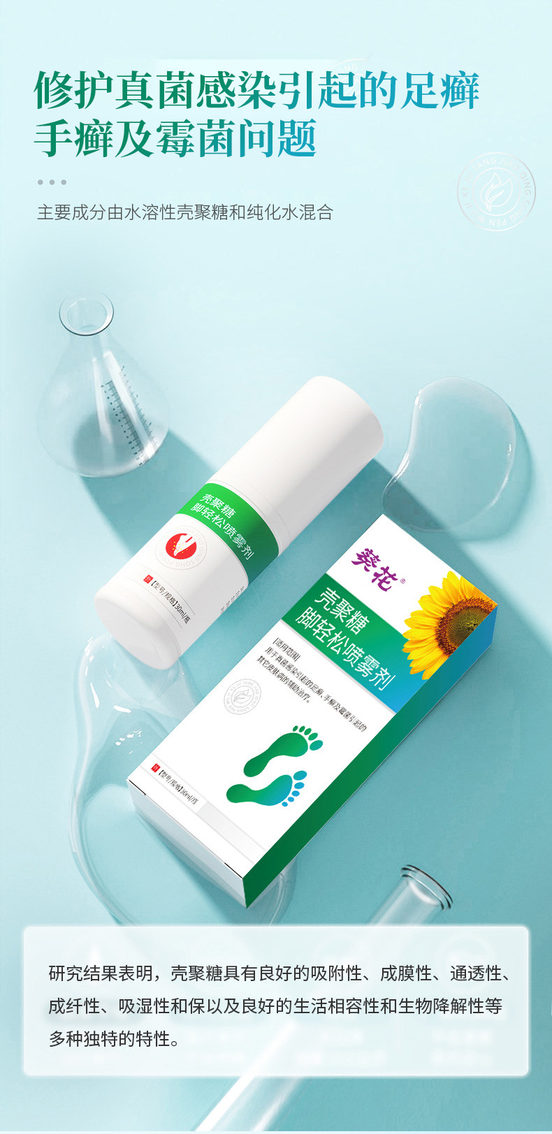 해바라기 키토산 발 이완 스프레이 무좀, 껍질 벗겨짐, 발 냄새 및 발 땀 스프레이 발 관리 솔루션