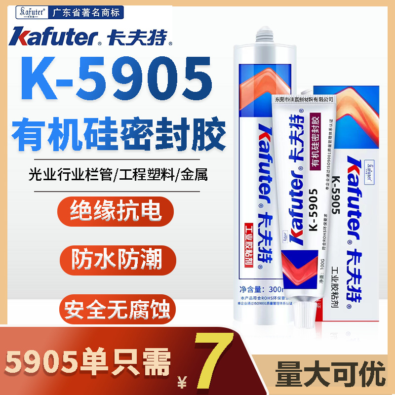 2、K-5905L快干型有机硅密封胶用于工程塑料、金属、玻璃和陶瓷等物体粘接、密封。