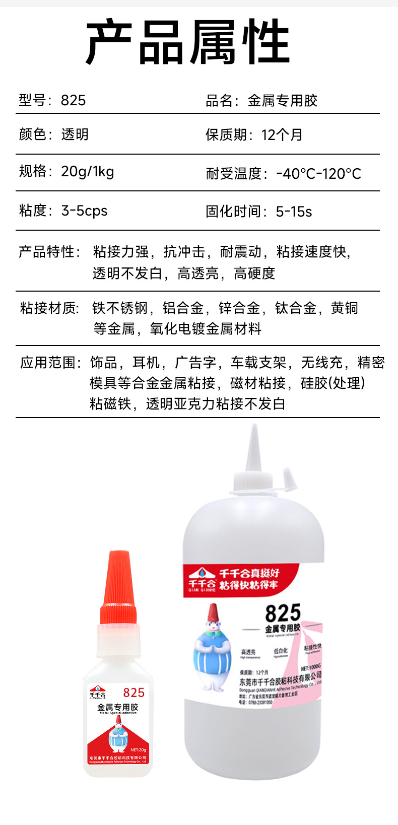 금속 전용 접착제 전기도금 자석 합금 플라스틱 투명 아크릴 무백화 속건 접착제 도매 825