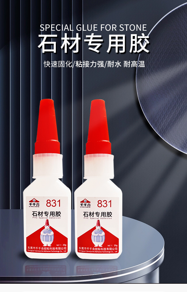 Qianqianhe 831 석재 접착제 슈퍼 접착제 경옥 옥 조약돌 대리석 균열 본딩 빠른 건조 접착제