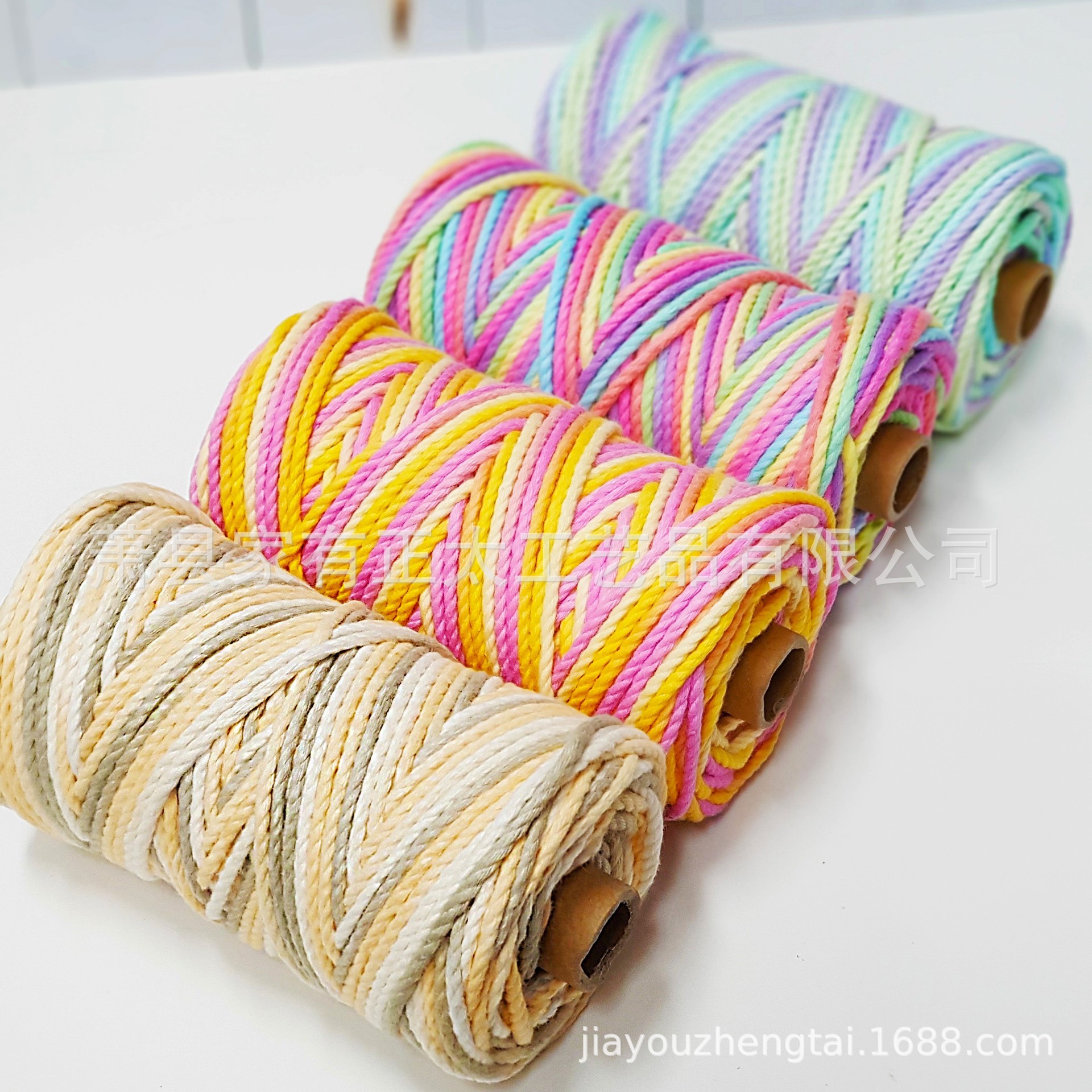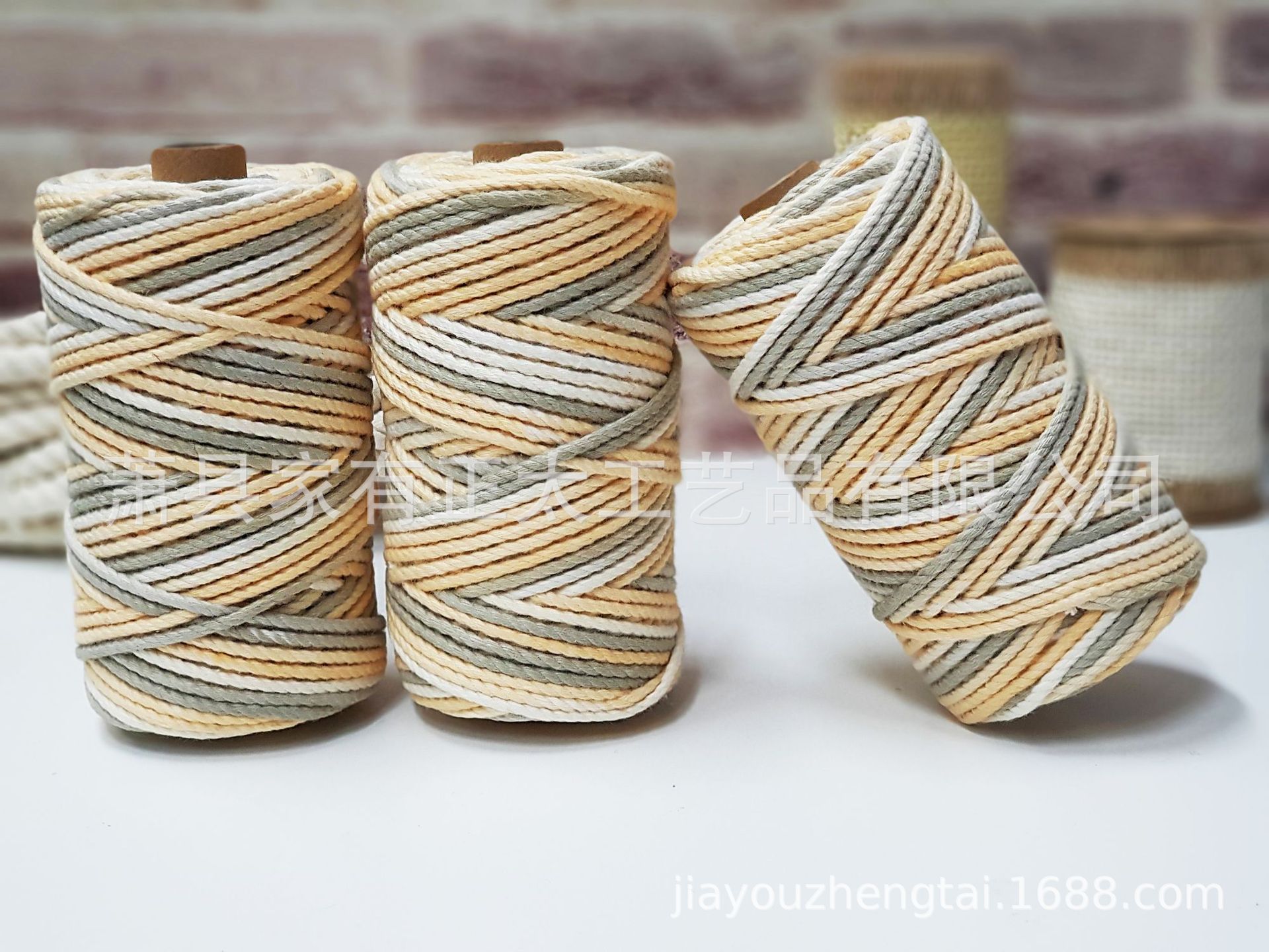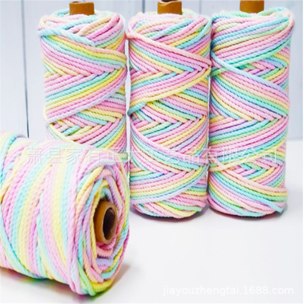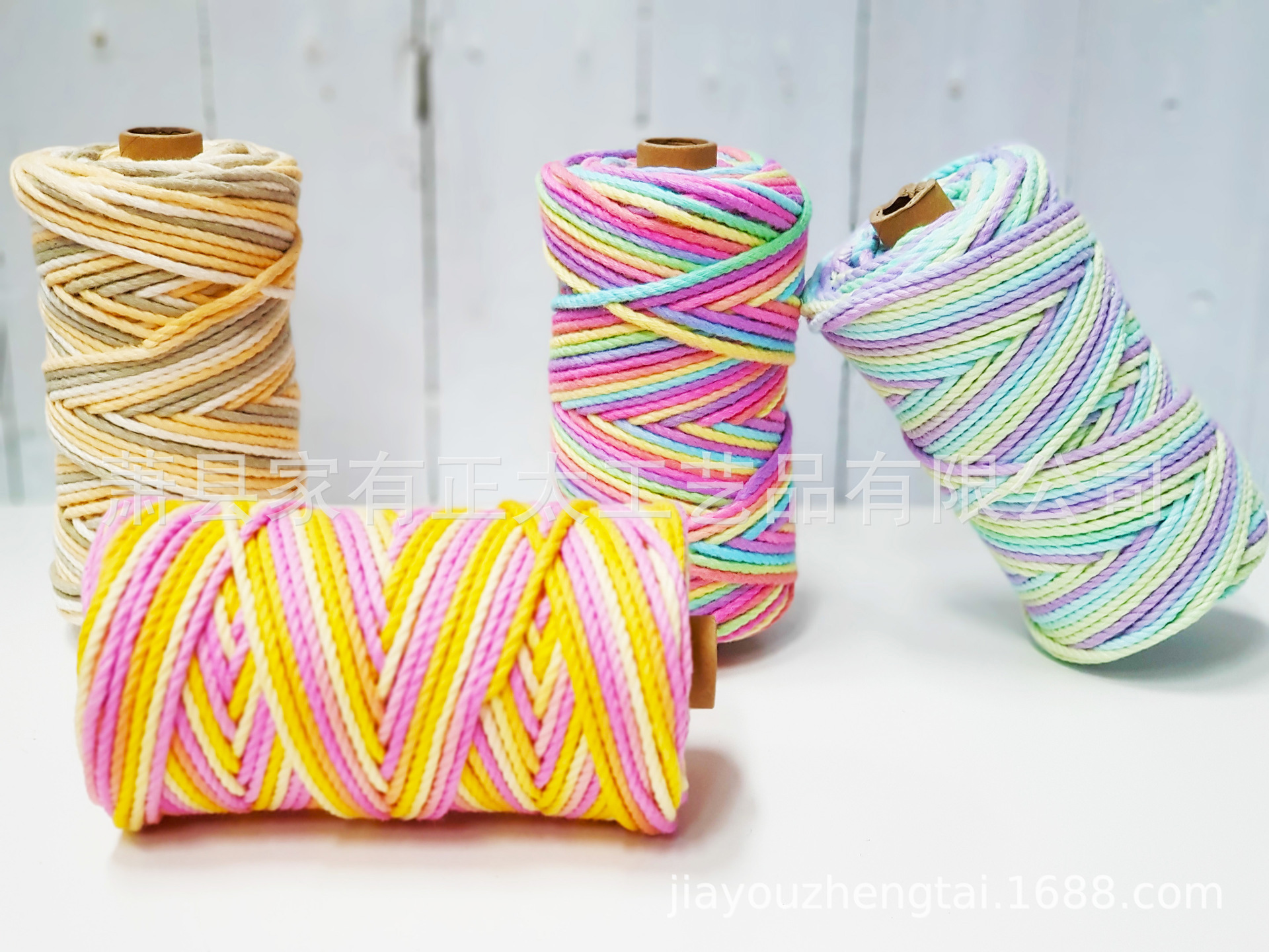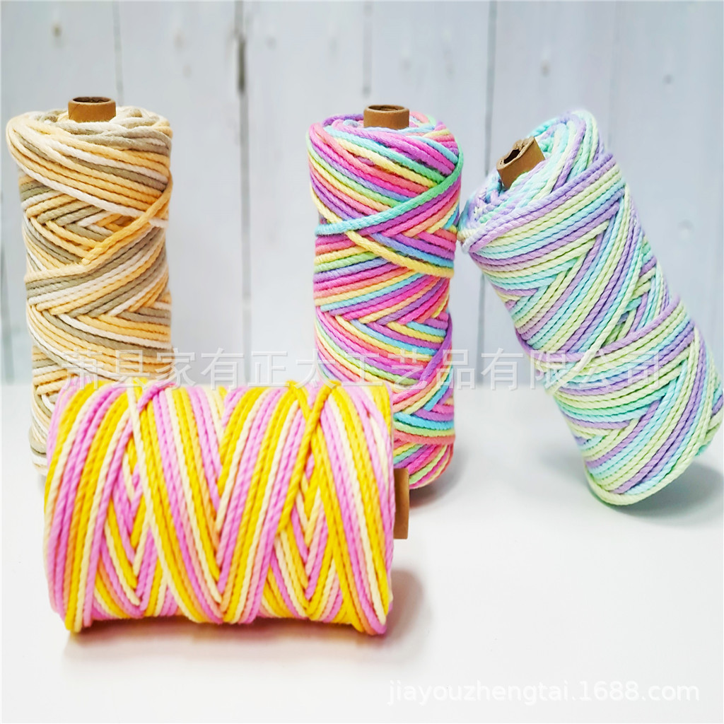 3.5MM 그라데이션 컬러 순면 3가닥 로프, 고강도 크로셰 뜨개질 로프, DIY 핸드메이드 뜨개질 로프, 마크라메 재료 로프