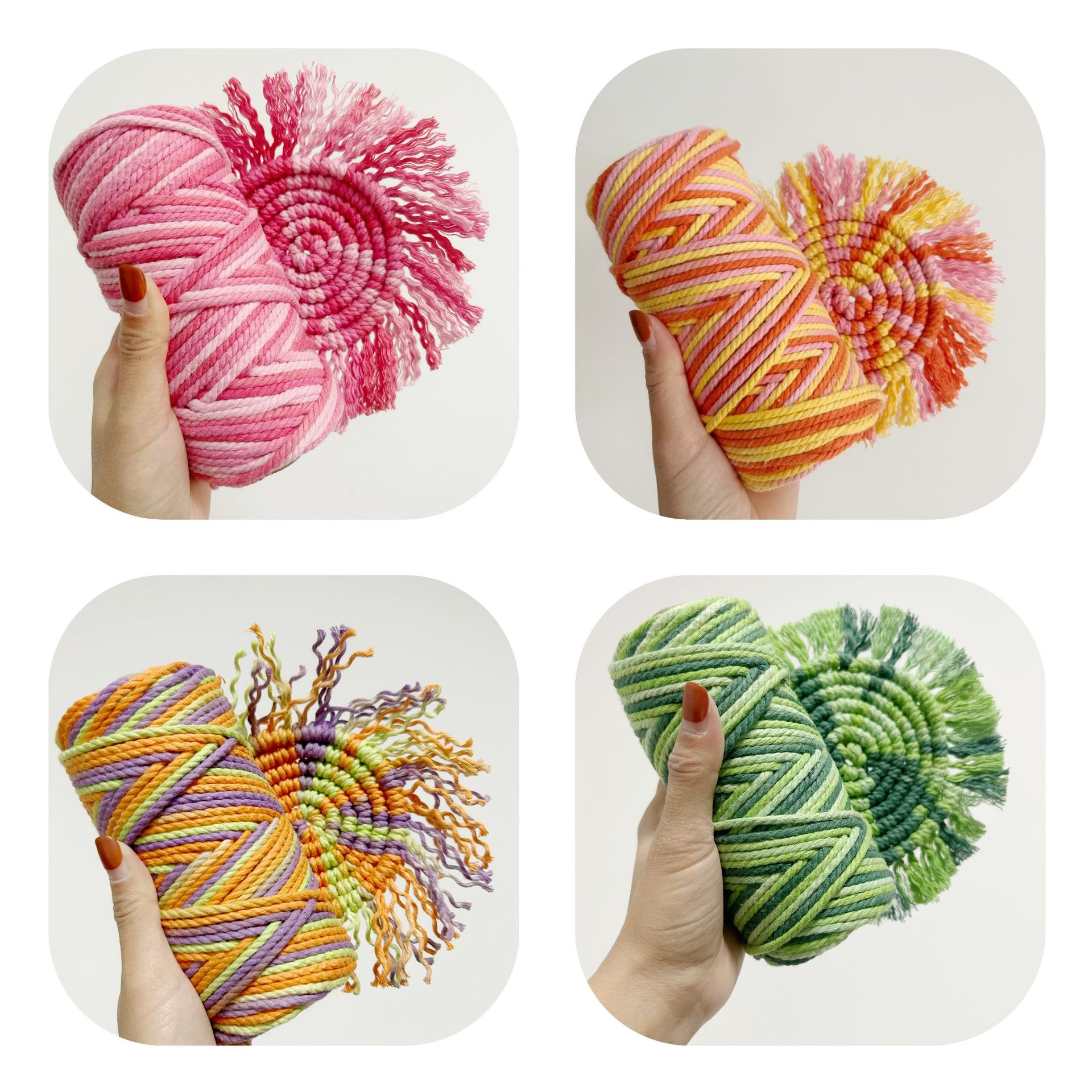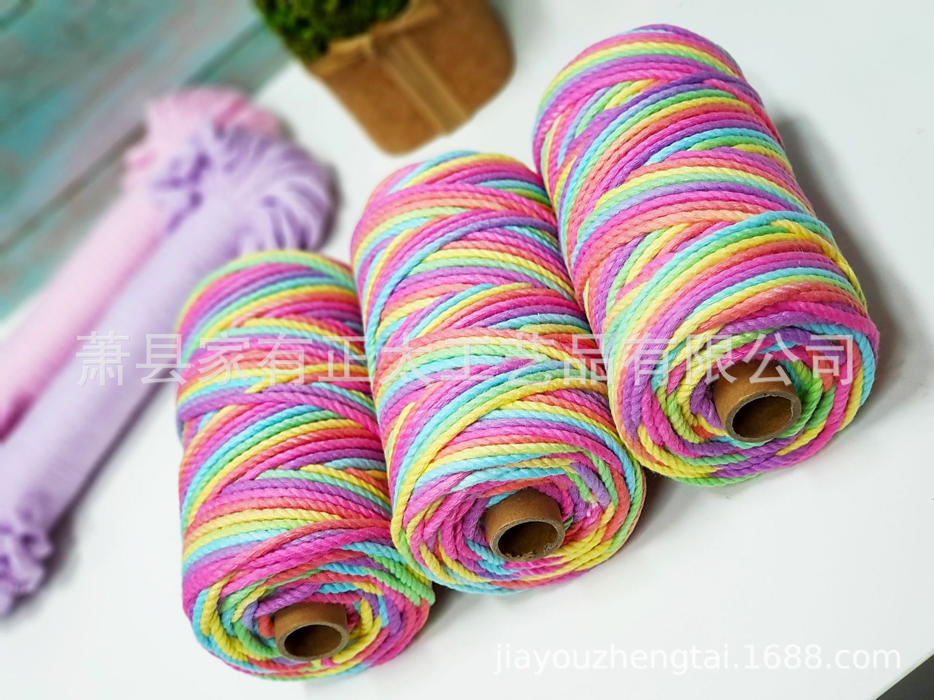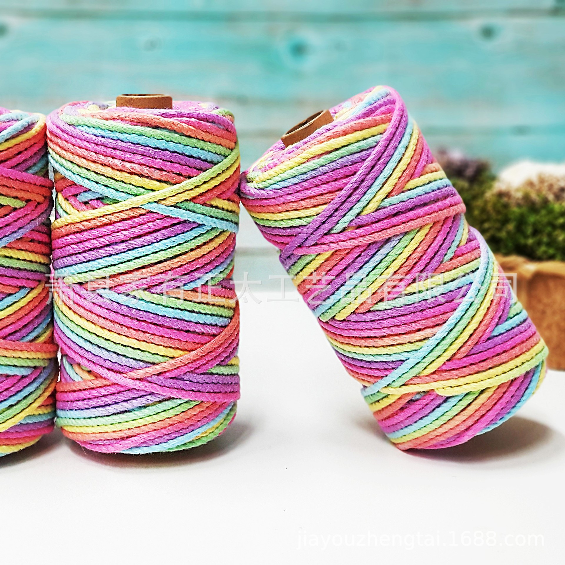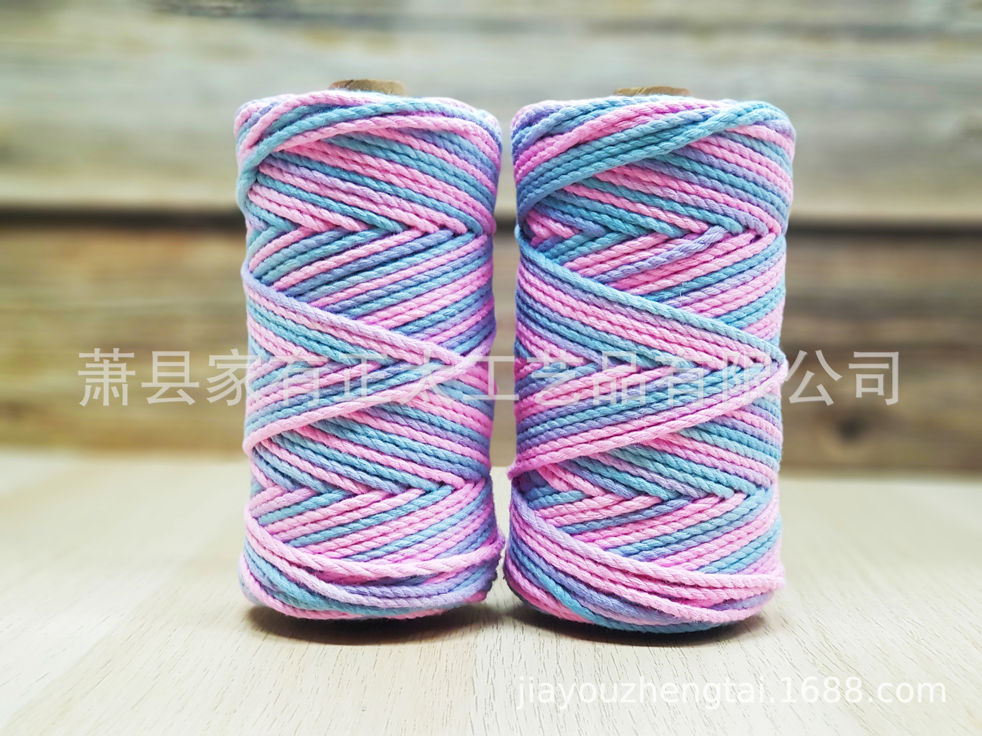 3.5MM 그라데이션 컬러 순면 3가닥 로프, 고강도 크로셰 뜨개질 로프, DIY 핸드메이드 뜨개질 로프, 마크라메 재료 로프