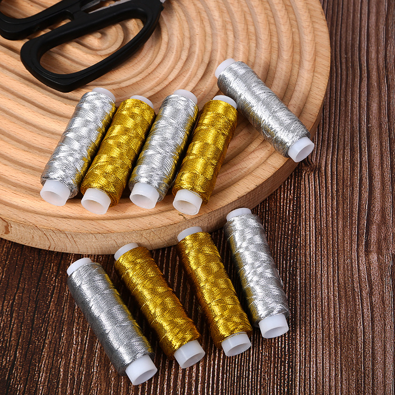 수제 금 및 실버 실 금속 금 실 실버 실 수제 DIY 패치 워크 가정용 재봉틀 재봉틀 자수 실