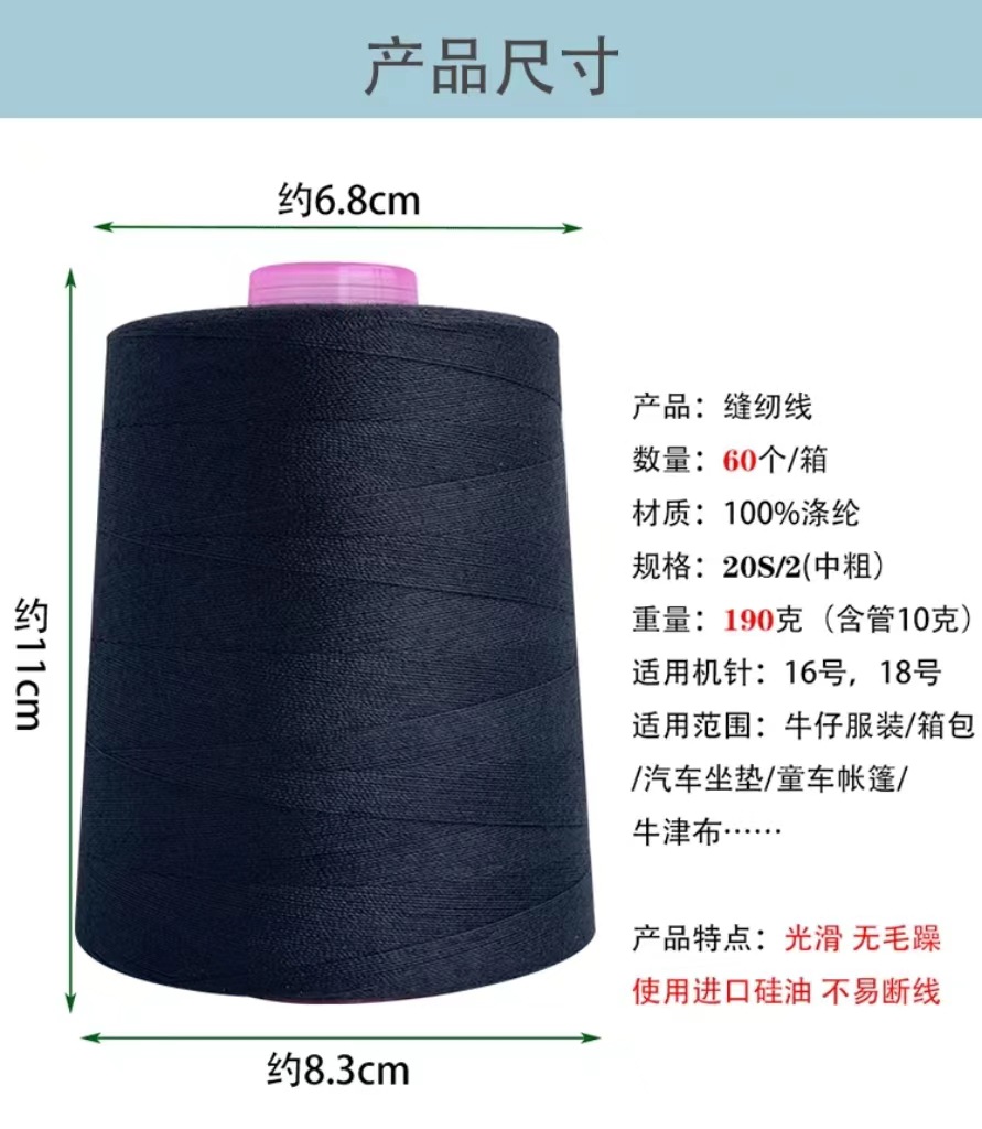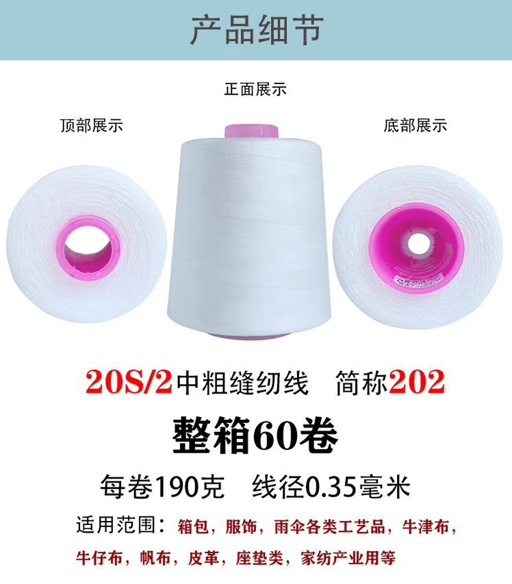 202 중간 두께의 재봉실 604 가죽 가방용 데님 실 탑형 재봉실 손바느질 실 고밀도