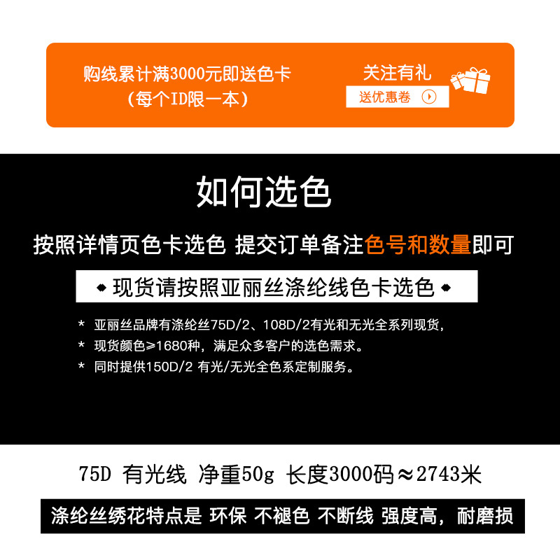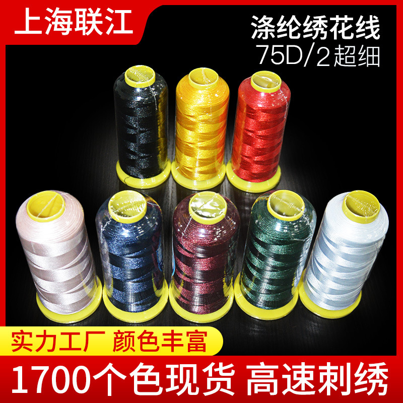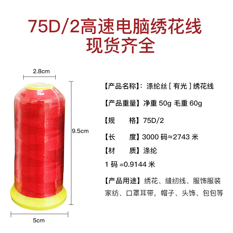 폴리에스터 실크 75d 2합 자수실 고압염색 컴퓨터 고속 자수 의류용 일반 도매 재고 중간굵기