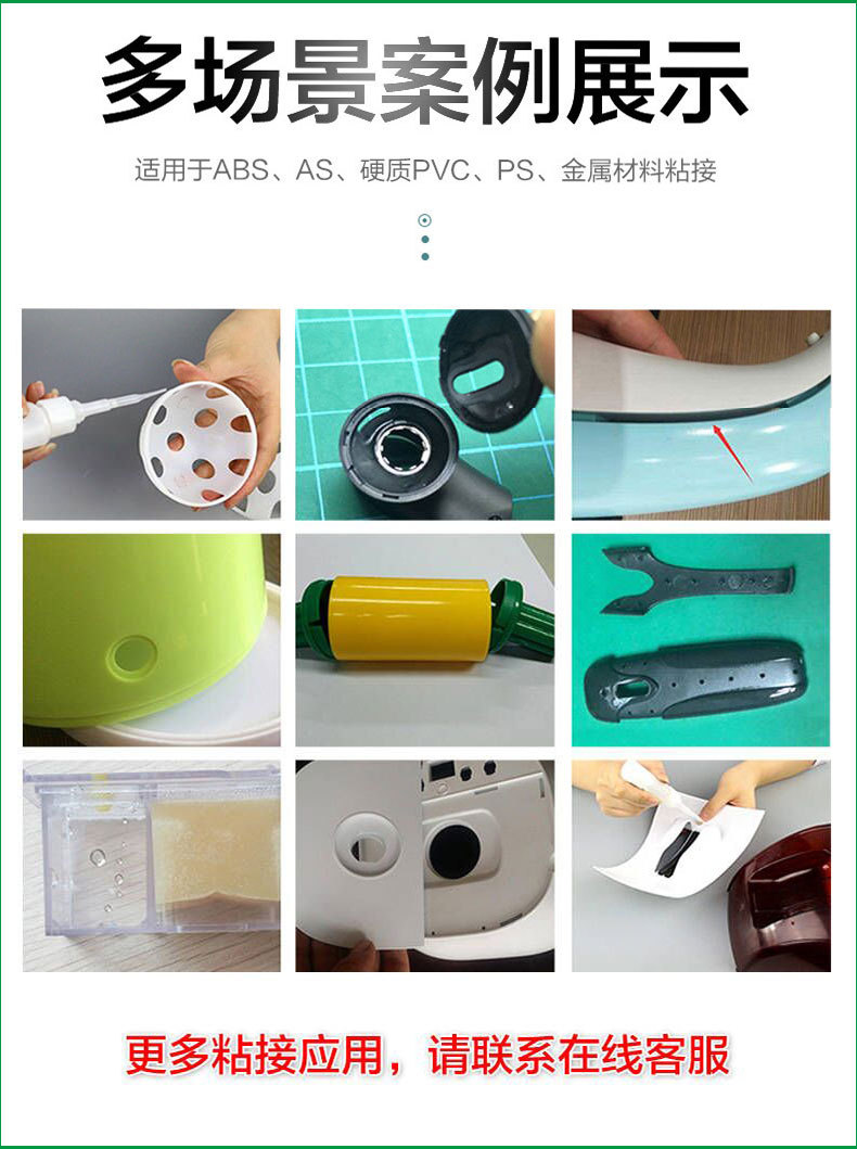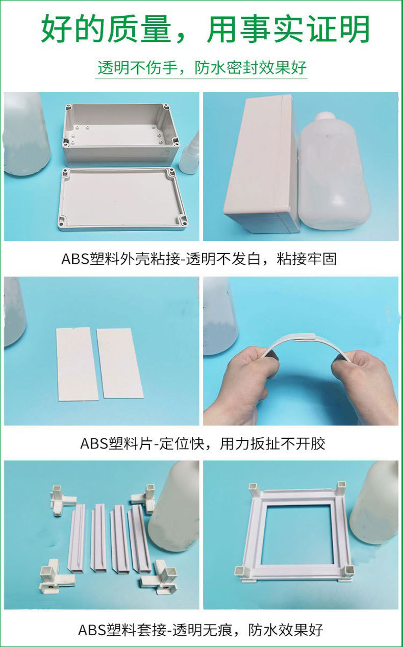 ABS 플라스틱 접착제는 플라스틱 장난감, PVC 휴대폰 케이스에 사용 가능하며, 강력하고 빠르게 건조되며 투명하고 흰색 변하지 않는 접착제입니다.