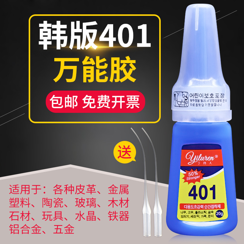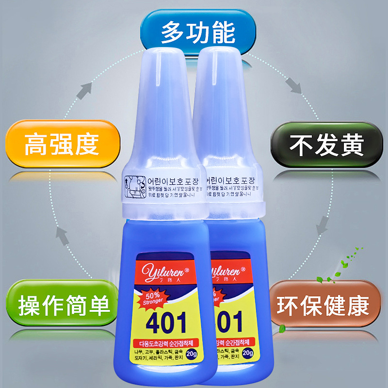 401 강한 인스턴트 드라이 접착제 물 끈적 끈적한 금속 플라스틱 고무 유리 세라믹 네일 슈즈 특수 접착제의 한국어 버전