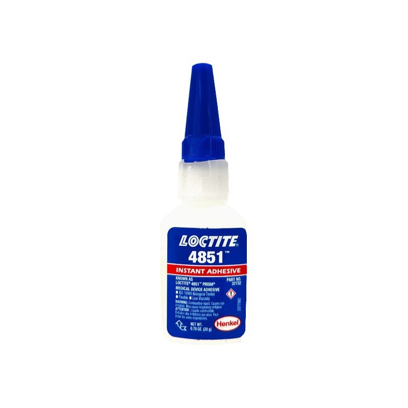 乙基/丁基氰基丙烯酸液体接著剂,用于难以黏结材料的装配。尤其为提供柔性胶层设计。LOCTITE®4851是一个透明、无色、乙基/丁基氰基丙烯酸液体接著剂,适用于难以黏结的材料的装配,并且可以提供柔性胶层。它提供了多种材料,包括多孔或吸收性材料的快速黏结。适用于一次性医疗设备的装配,获得了汉高ISO10993认证。为提供柔性胶层设计的为装配难于黏结的材料设计的保持介面的完整压缩性通过汉高ISO10993标准认证,用于一次性医疗设备尤其适用于黏结多孔、吸收性材料,如纸、皮革与编织物