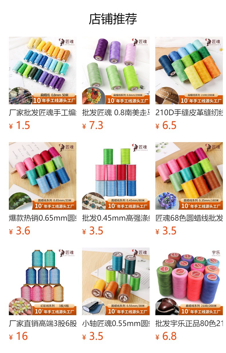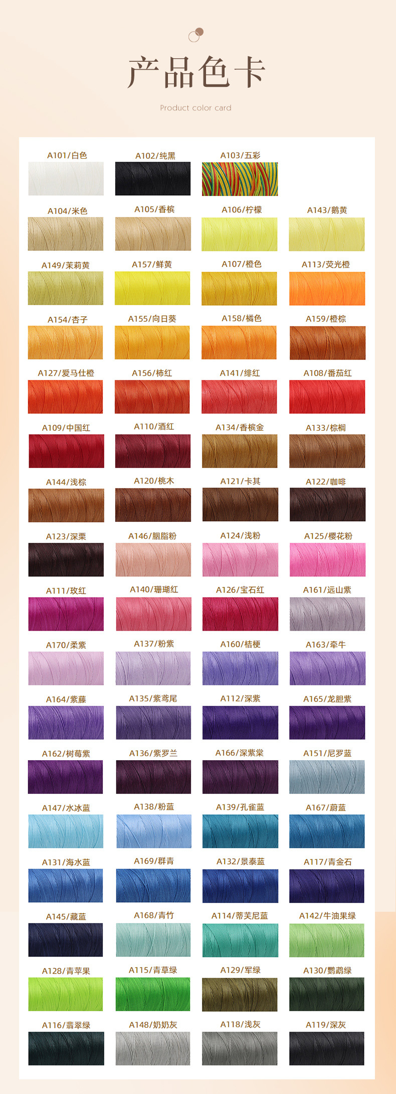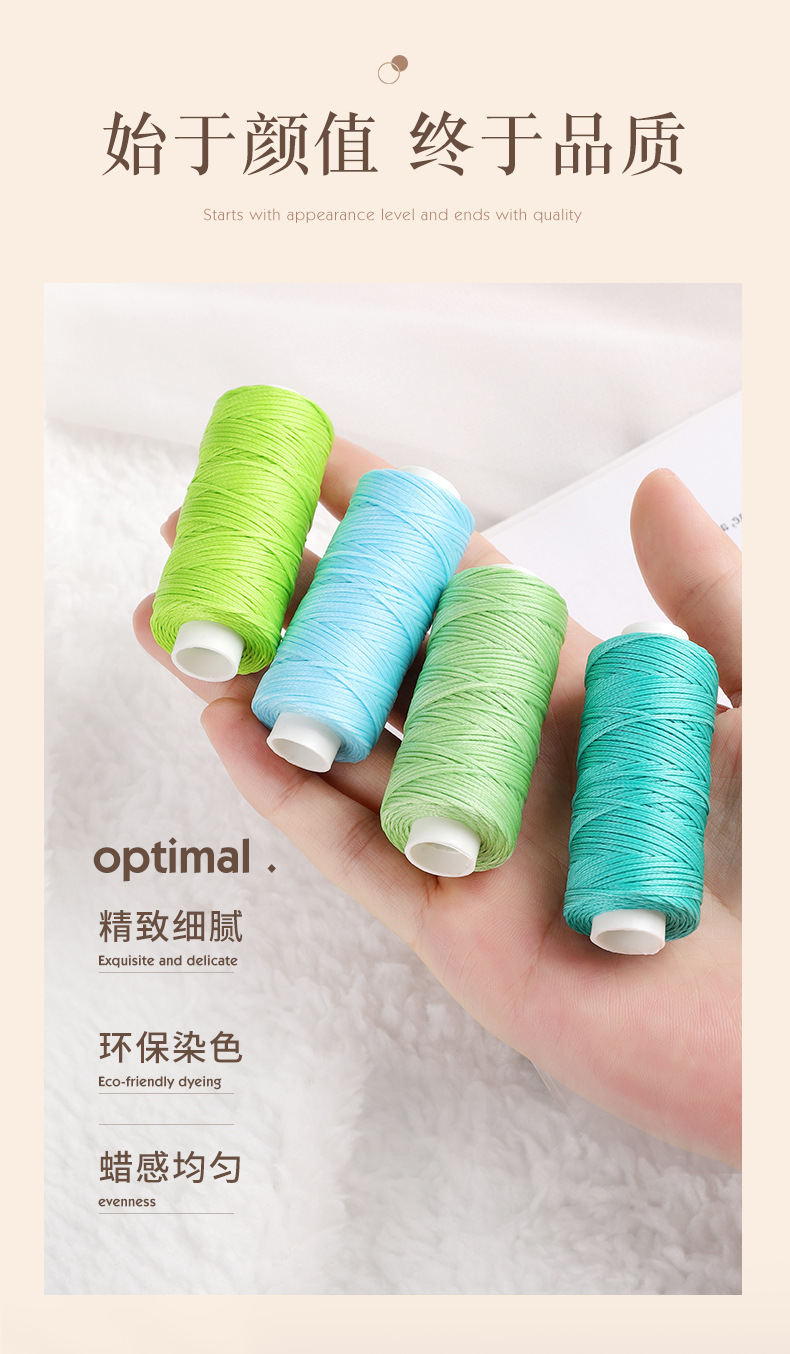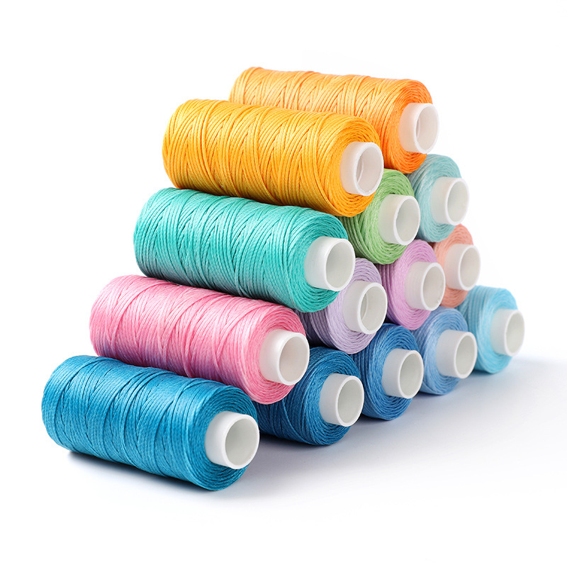 공장 도매 0.8 손 바느질 가방 바느질 스레드 150D 다채로운 왁스 스레드 손으로 짠 diy 가죽