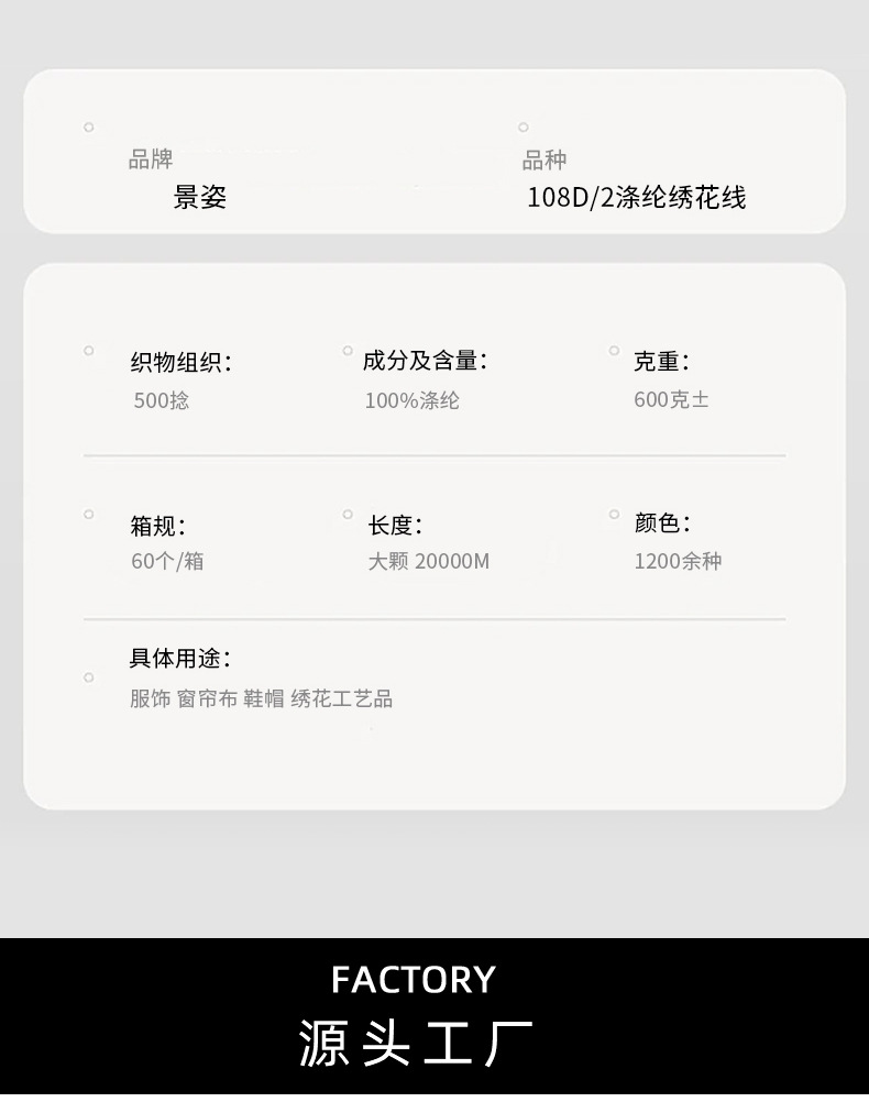 수용성 자수실 폴리에스터 자수실 5000야드 치파오 및 한복 전용 자수 부자재