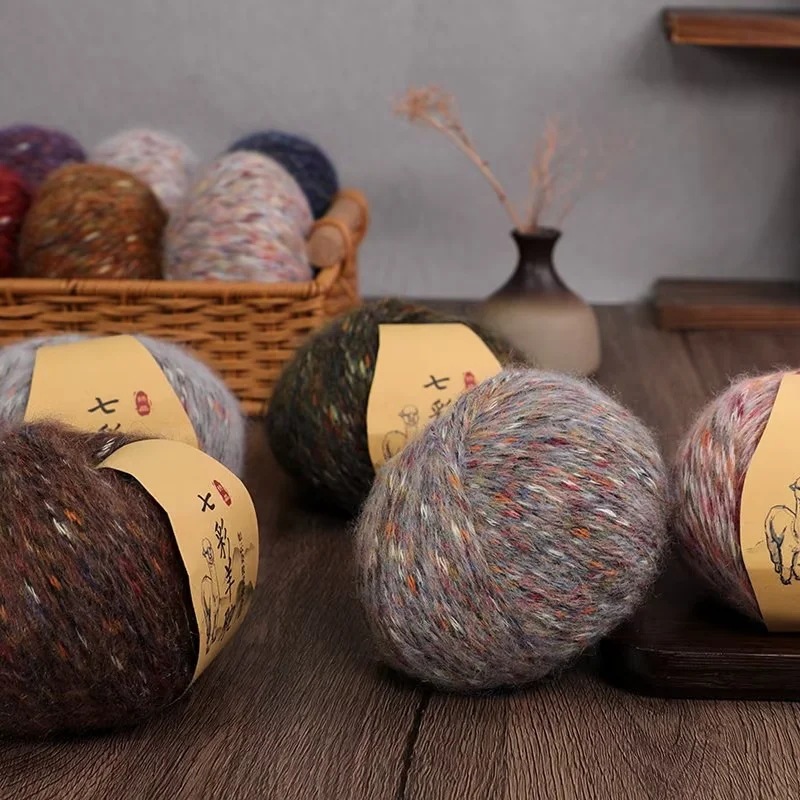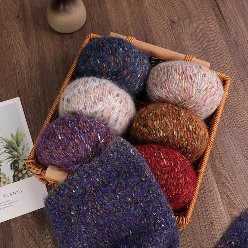 다채로운 알파카 컬러 보헤미안 핸드 니트 미드 두께 스틱 모헤어 스웨터 코트 스카프 목도리