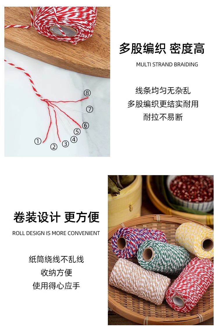 크리스마스 데이 레드와 화이트 라인 드래곤 보트 축제 패키지 Zongzi 코튼 라인 코튼 로프 로프 핸드 타이 로프 DIY 컬러 로프