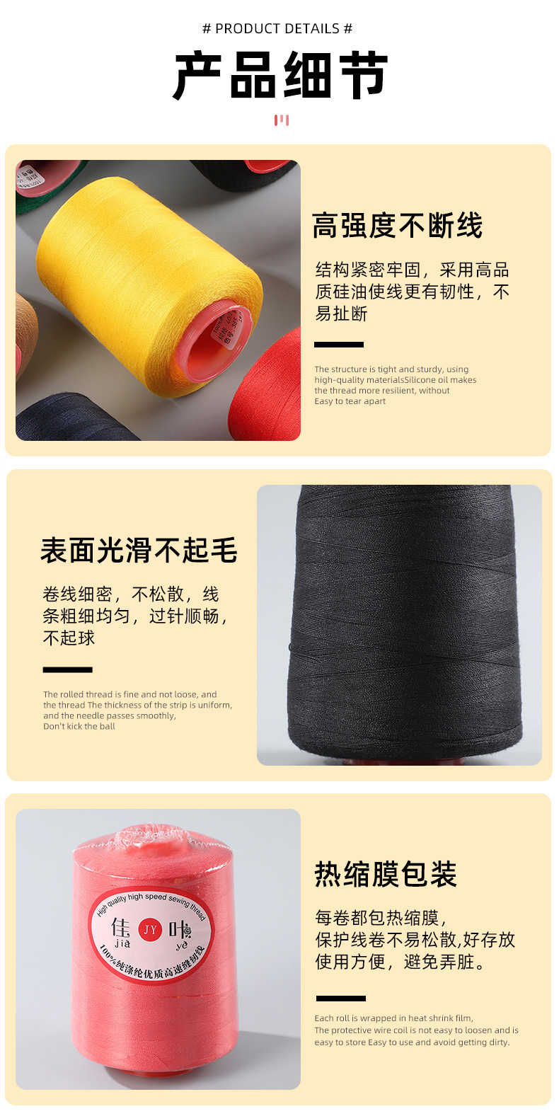 제조업체 공급 가방용 실 20/2 중간굵기 실 가죽용 데님 실 텐트용 실 폴리에스터 실 604 재봉틀용 실