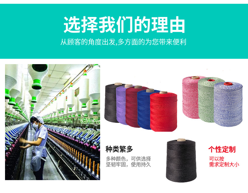 산업용 폴리에스터 직조 쌀 포대 봉합 실 컬러 다화 포장 봉합 실 쌀만두 실 대형 롤 1KG 제조업체