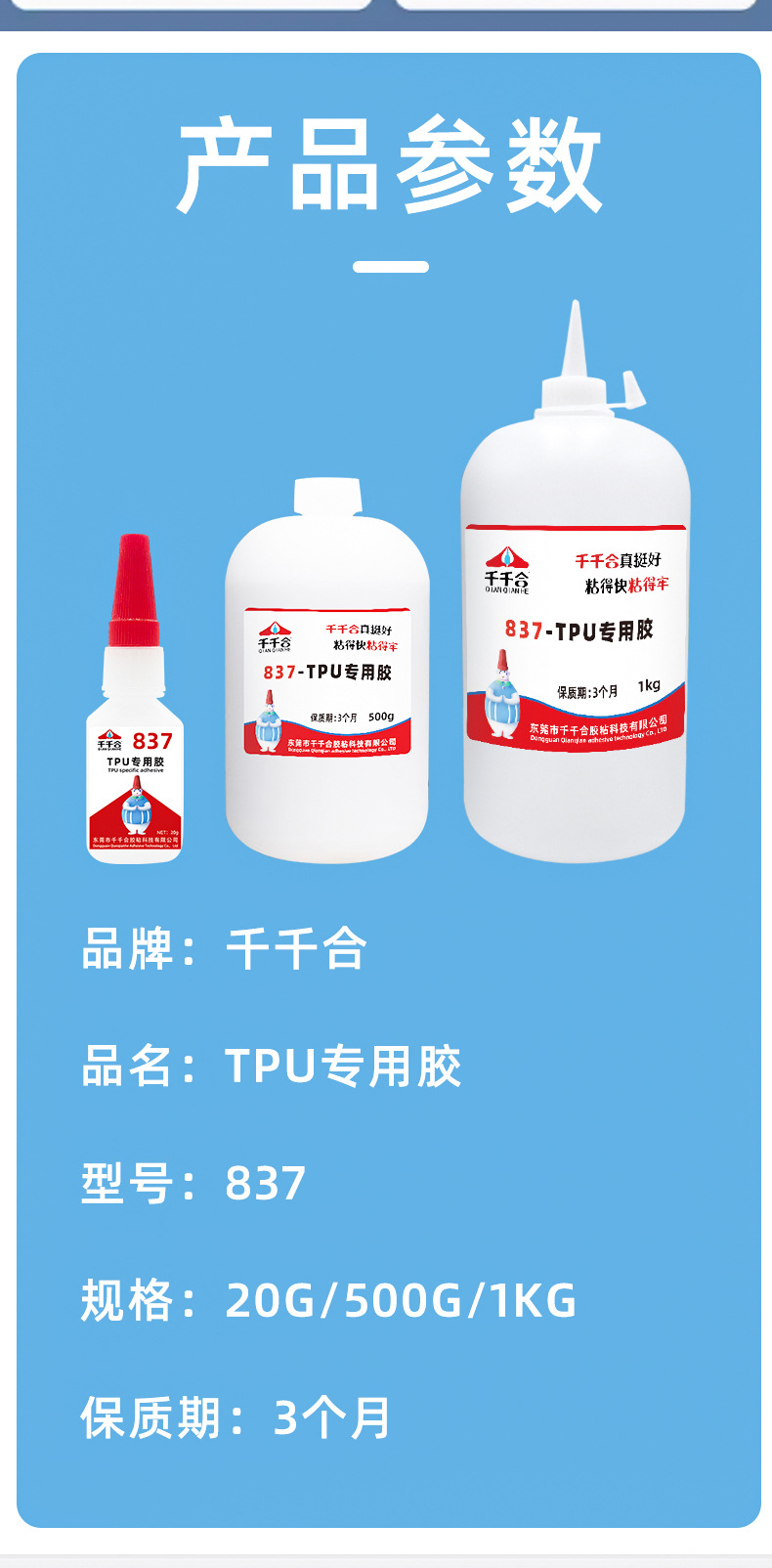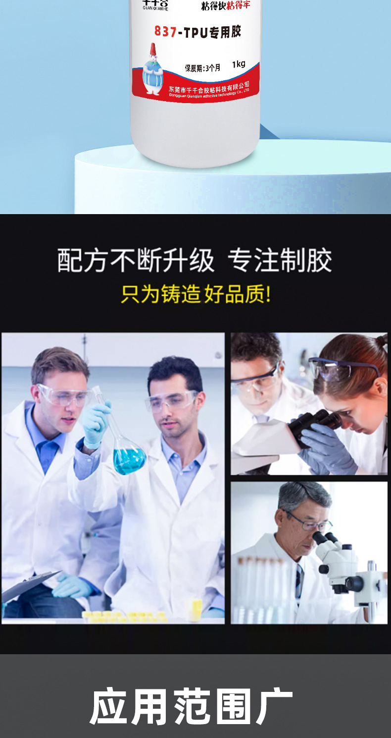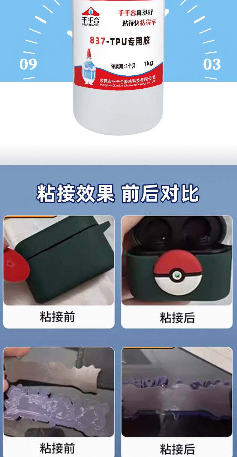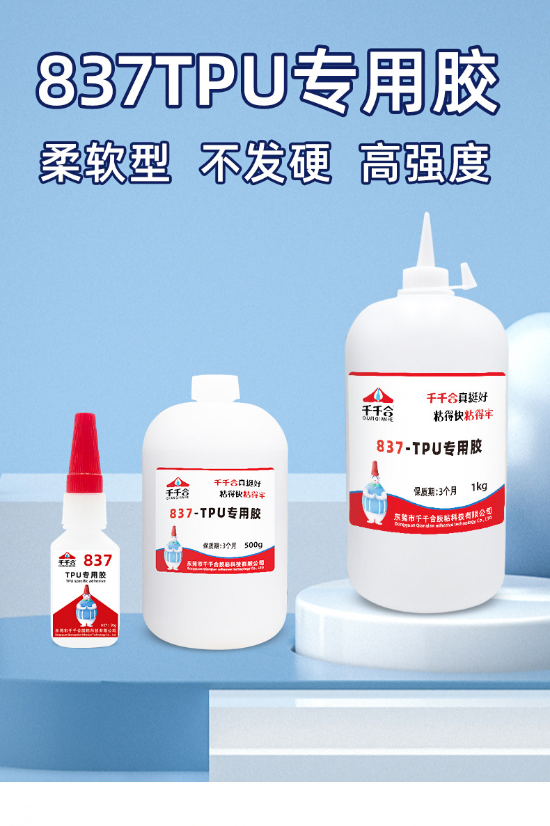 TPU 접착제 TPU 전용 접착제 강력 접착 연질 PVC 플라스틱 고무 장난감 공장 전용 도매 Qianqianhe 837