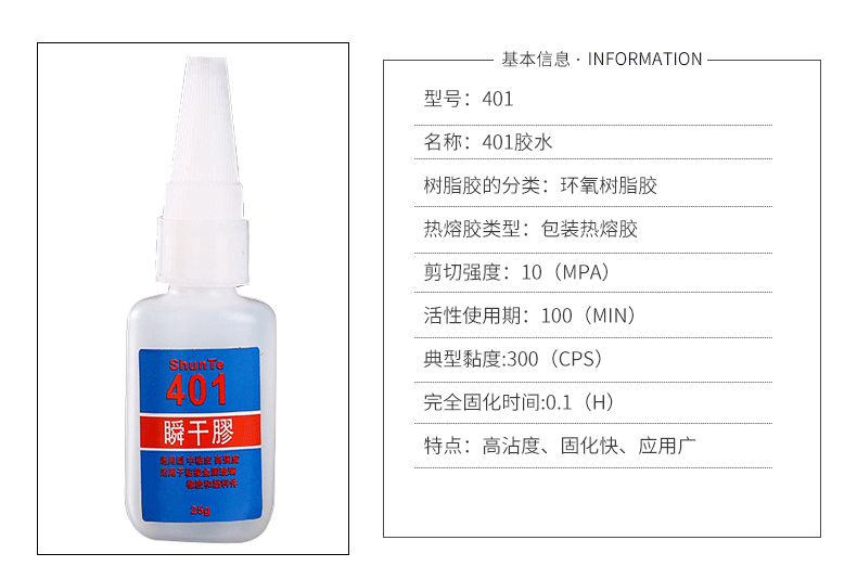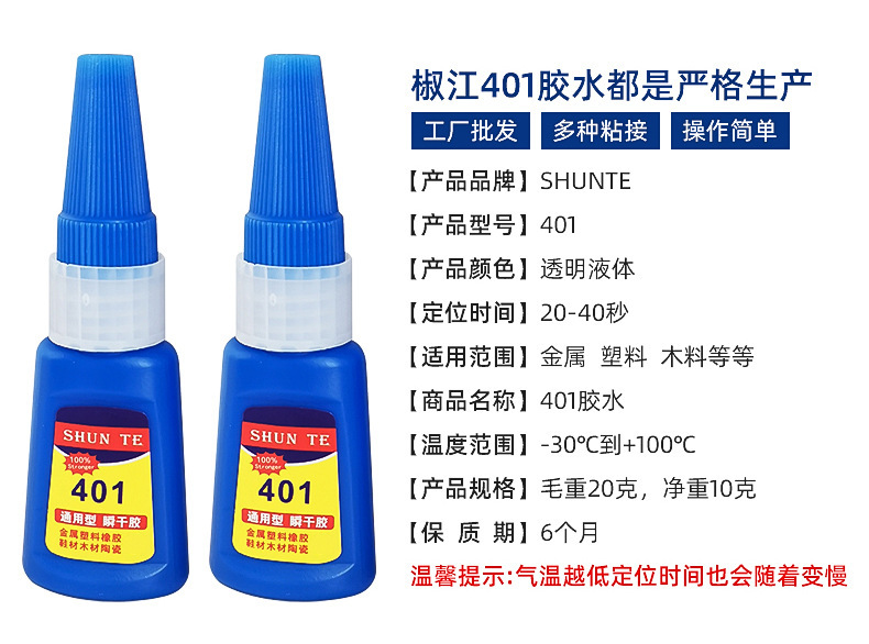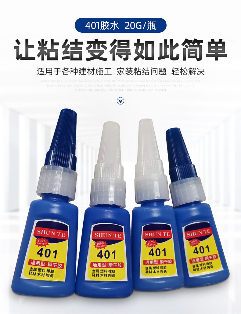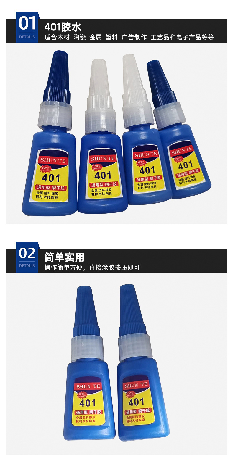 401 접착제, 플라스틱, 세라믹, 목재용 접착제, 신발 수리용 접착제, 전자제품 및 장난감에 사용 가능, 다양한 규격의 속건성 접착제